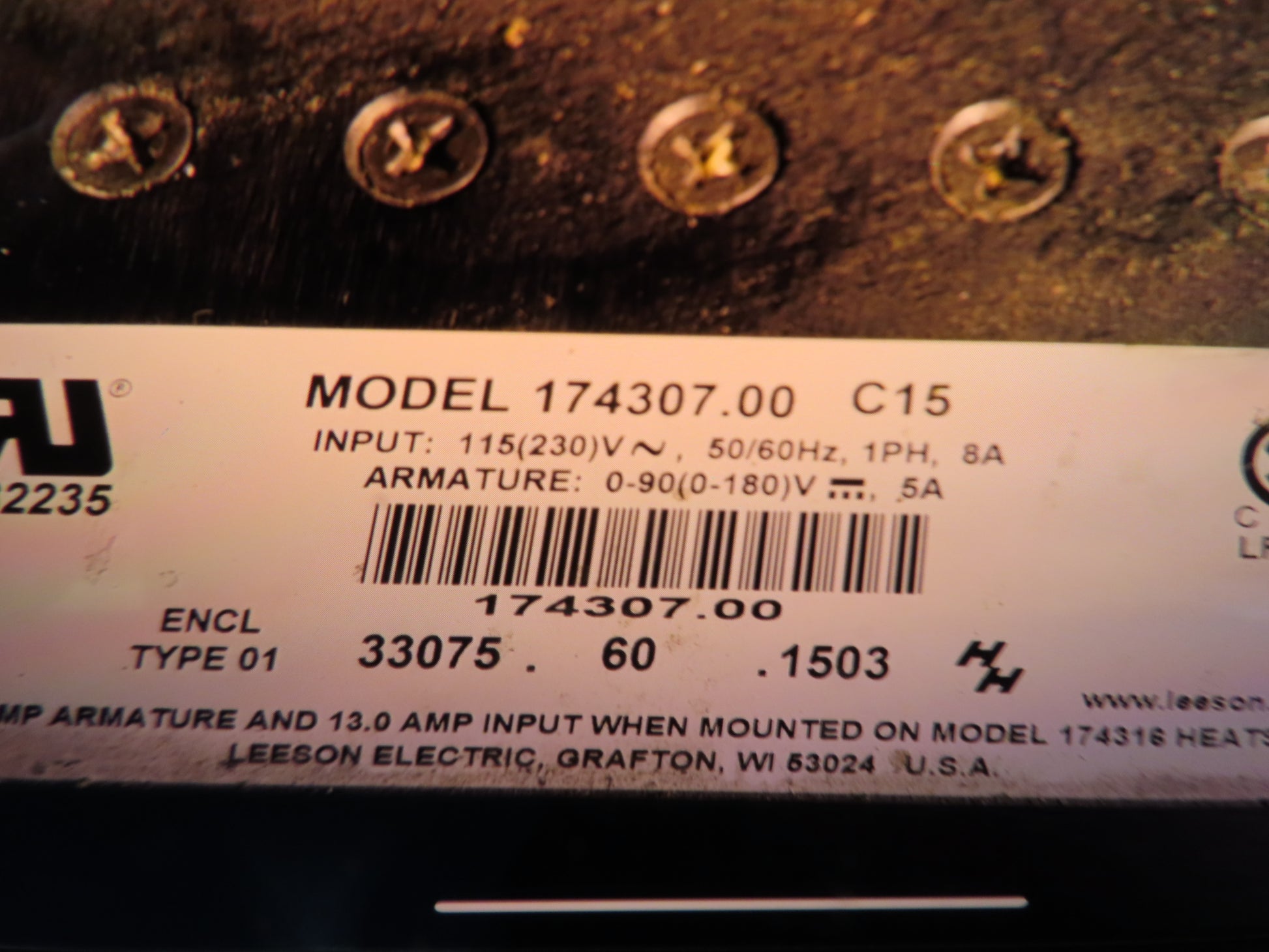 - Motor & Gearbox: 90VDC 1/4Hp Leeson 40:1 gearmotor