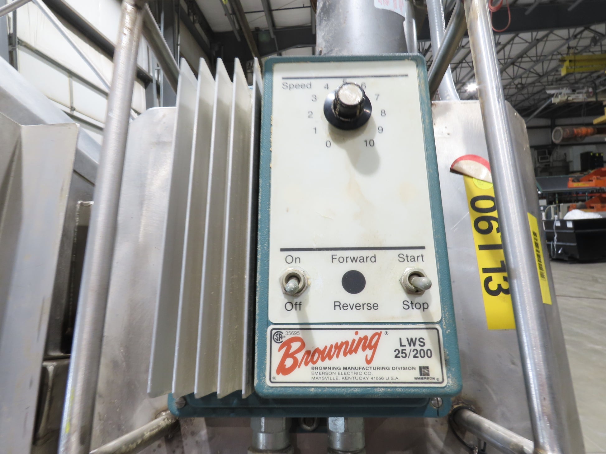 - Motor & Gearbox: 90VDC Motor with 115V Variable speed drive Browning LWS 25/200.
