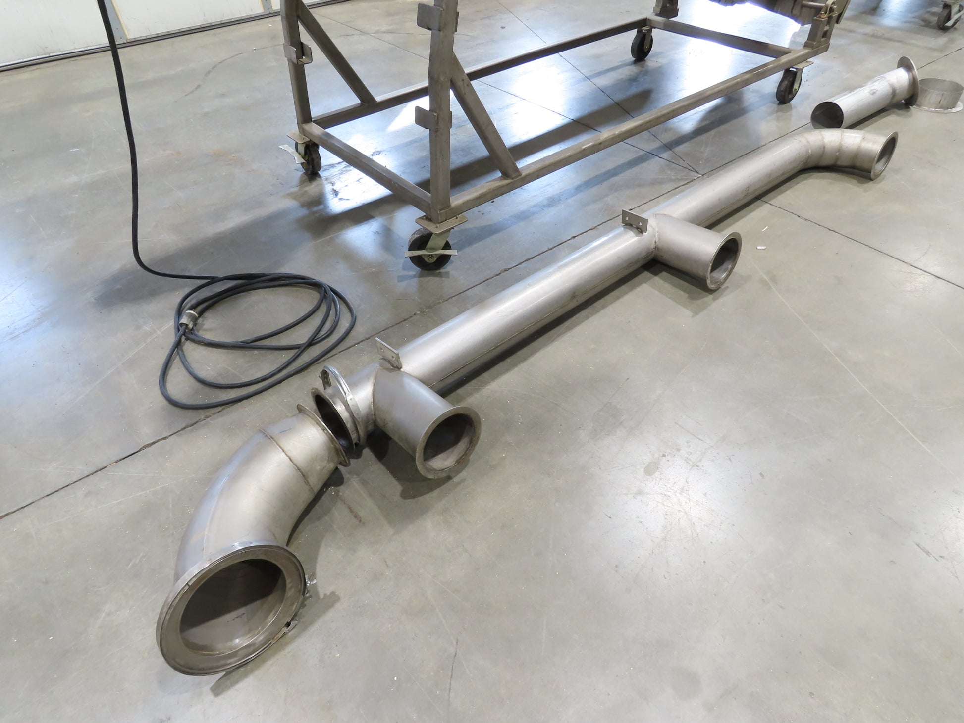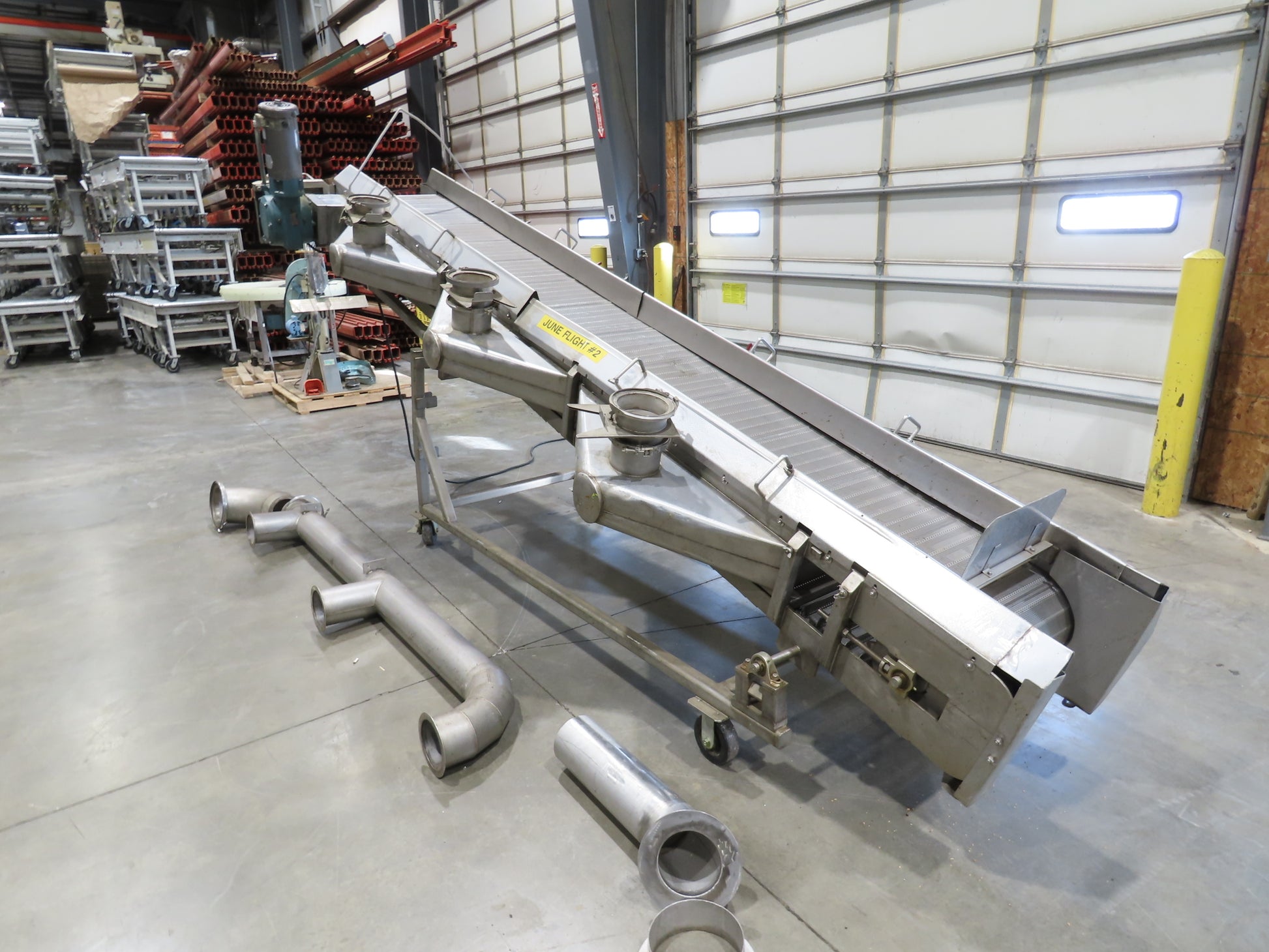 - Condition & Set-Up: In good working condition, removed from a working environment. Stainless conveyor with perforated belt and 8" dust collector 6" pipe system. On a portable tube frame.