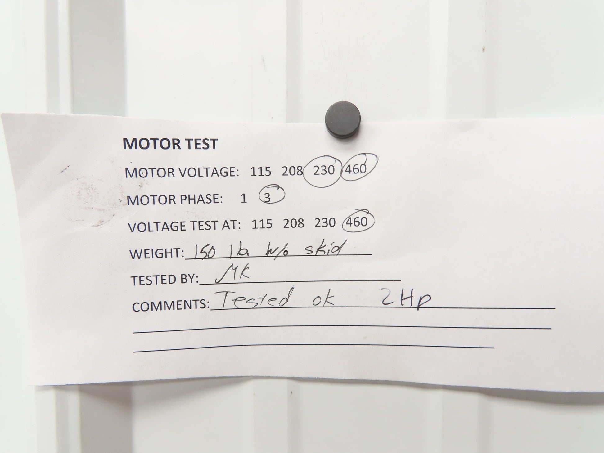 - 2 hp 3 phase motor with a control switch.