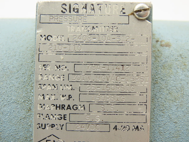 Acco 2408-10A-512-210-110 Signature Pressure Transmitter 24VDC 1/2" NPT 150PSI
