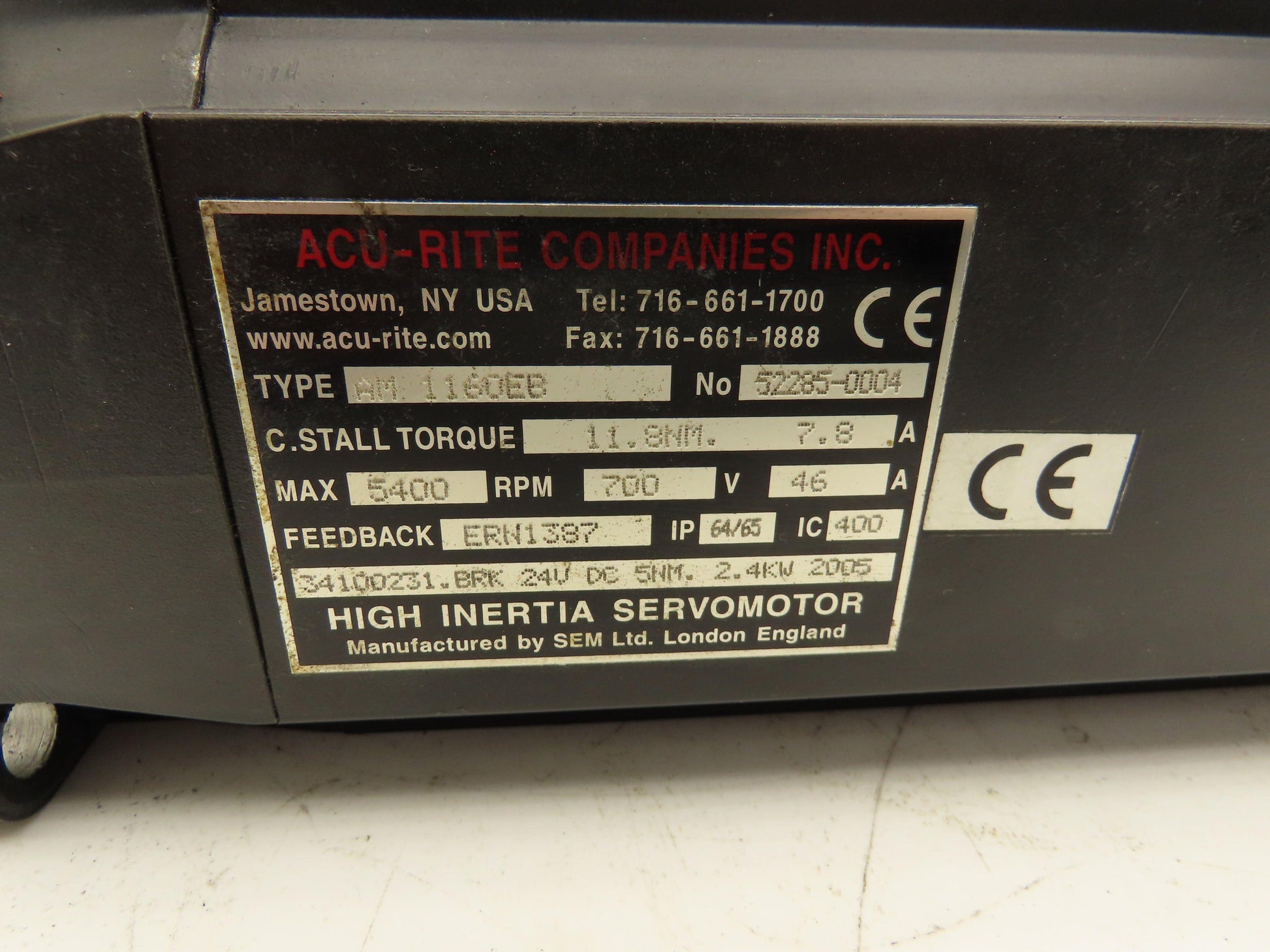 Acu-Rite AM 1160EB AC Servo Motor 700V 5400 RPM Encoder ERN1387 24V Brake