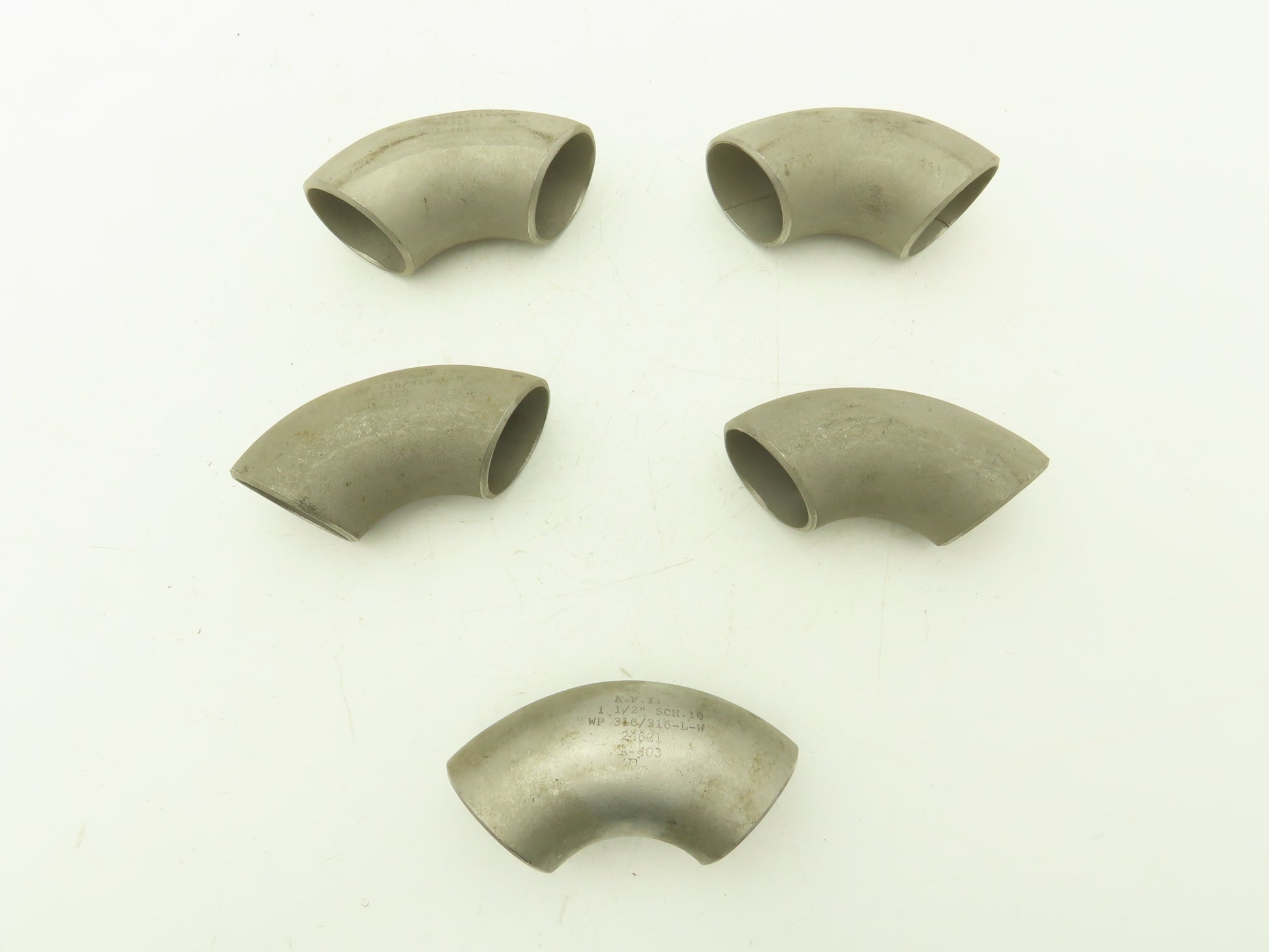 AFI 316L SCH 10 Stainless Steel 90° Elbow 1-1/2" Butt Weld Lot of 5