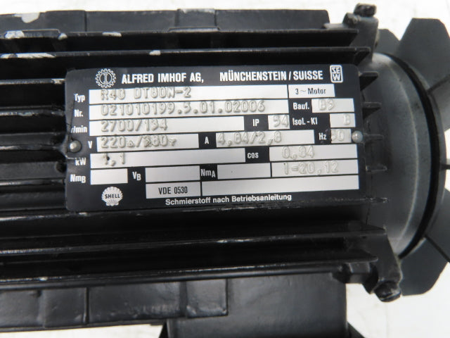 Alfred Imhof R40DT80N2 Inline Gearmotor 20.12 Reducer 134rpm 1.1kw 220/380V 3PH