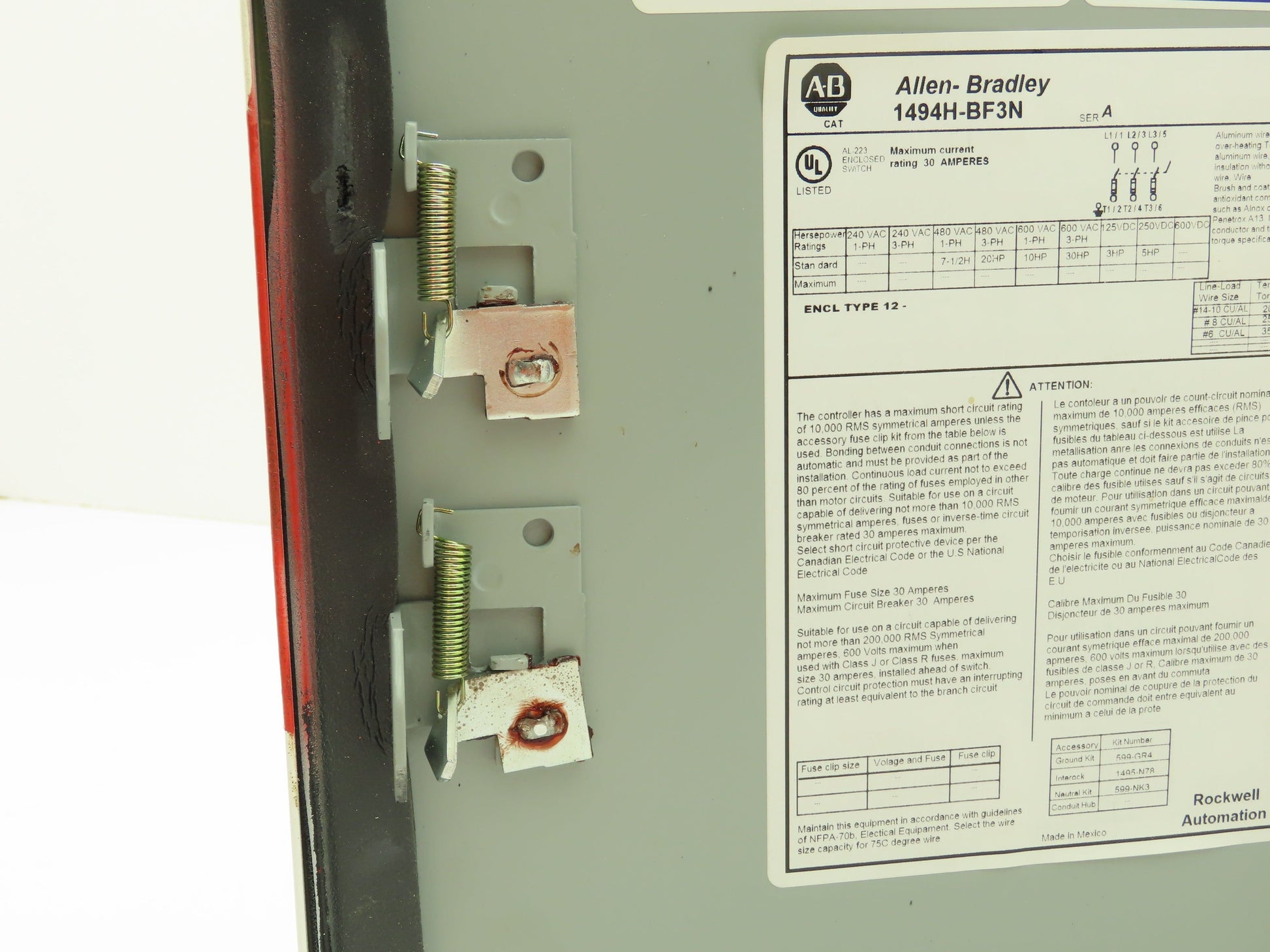 Allen Bradley 1494H-BF3N Safety Disconnect Enclosure 30A 600V Modified