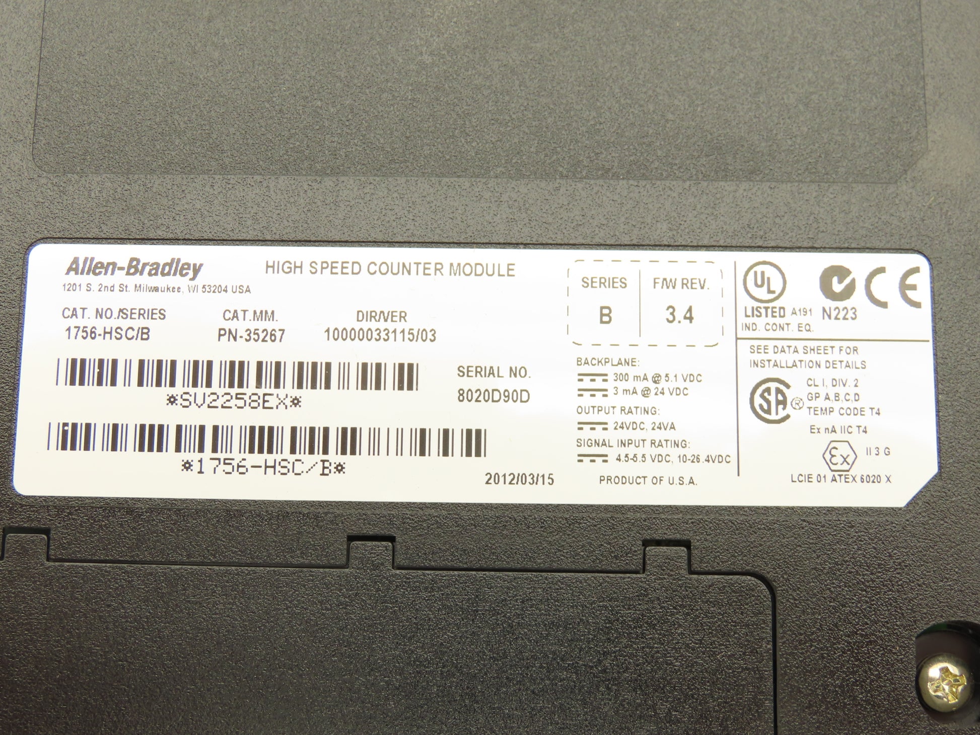 Allen Bradley 1756-HSC/B ControlLogix High Speed Counter Module F/W Rev 3.4