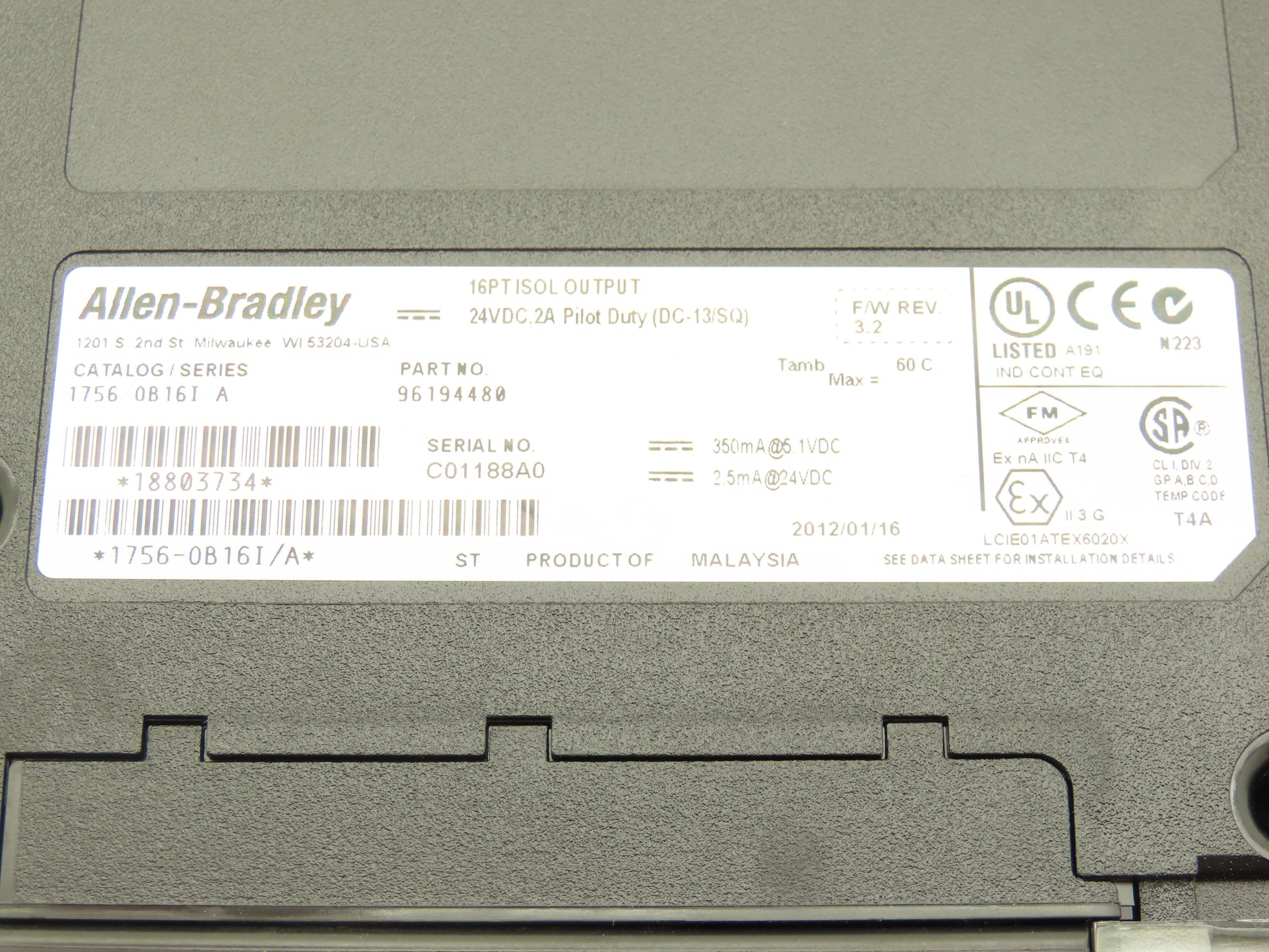 Allen Bradley 1756-OB16I ControlLogix 16PT Isolated Output 24VDC F/W Rev 3.2