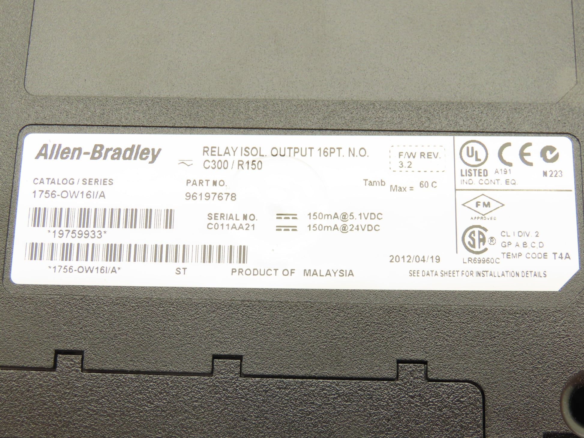 Allen Bradley 1756-OW16I ControlLogix 16PT Relay Isolated Output 24VDC Rev 3.2