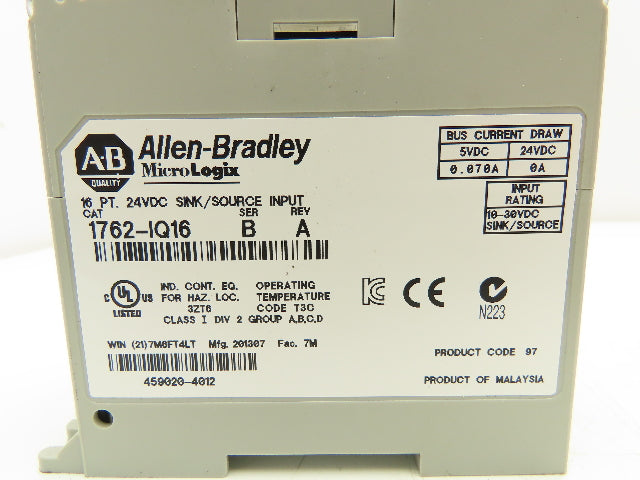 Allen Bradley 1762-IQ16 MicroLogix Sink Source Input Module Ser B Lot Of 2