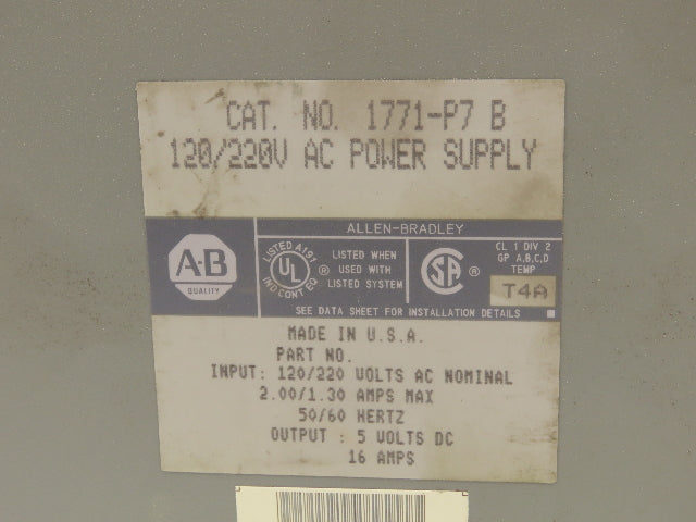 Allen Bradley 1771-P7 120/220 AC Power Supply Series B Lot of 3