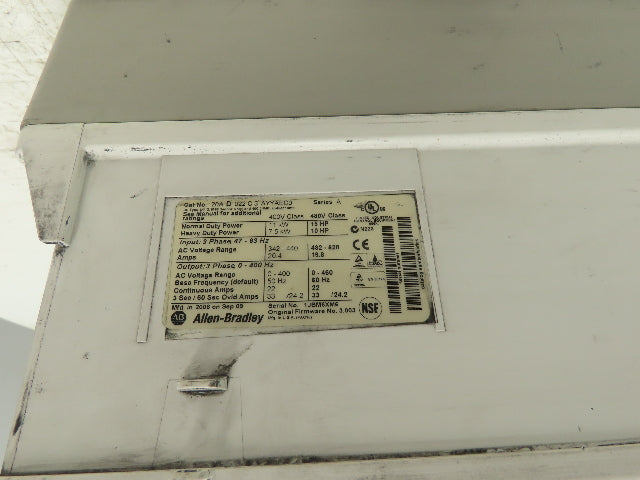 Allen Bradley 20AD022C3AYYAEC0 Powerflex 70 AC Drive VFD 480V 15HP 22A 3Ph IP66