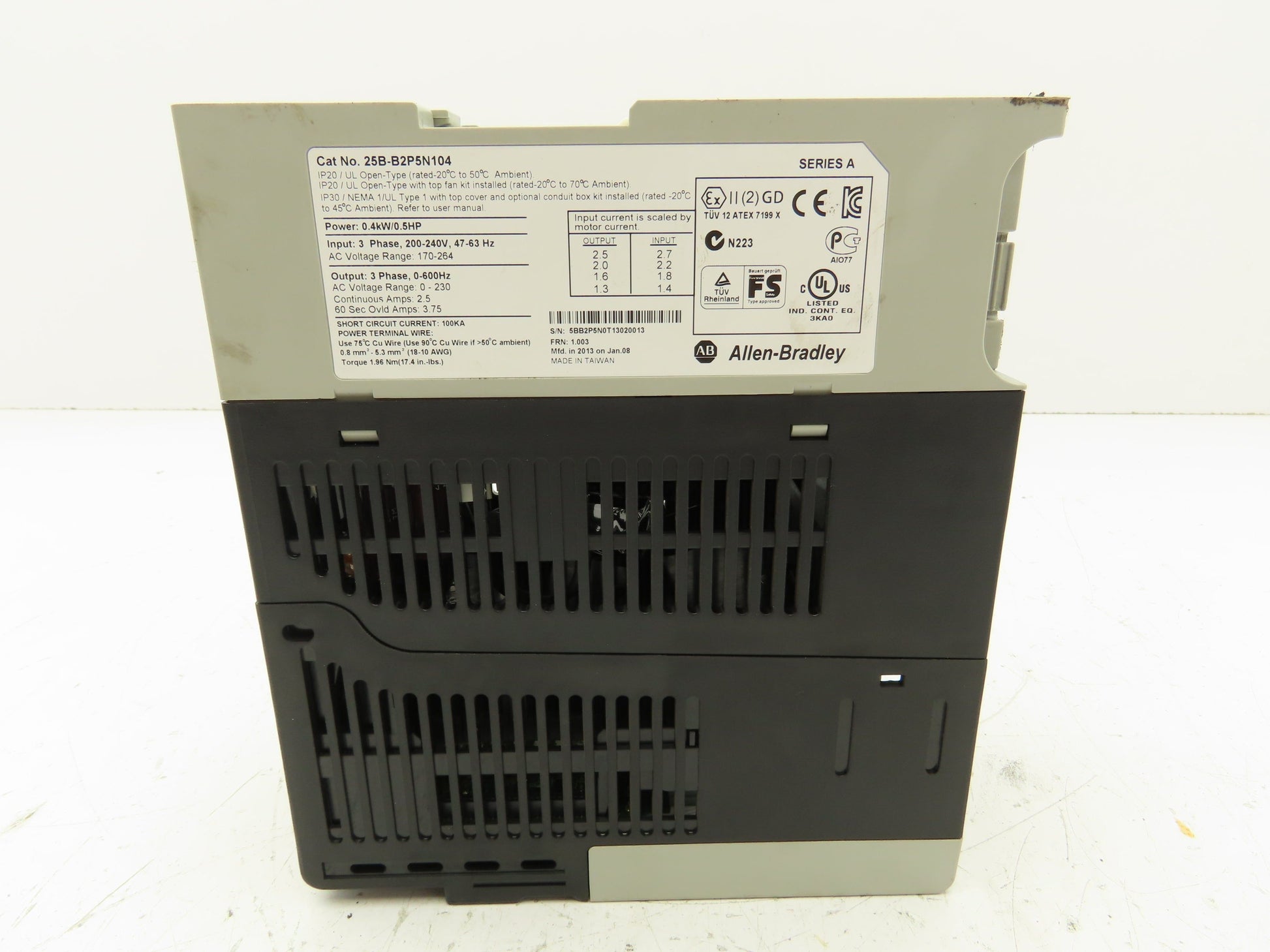 Allen Bradley 25B-B2P5N104 PowerFlex 525 VFD AC Drive 0.4kW 0.5HP 3PH 240V 2.5A
