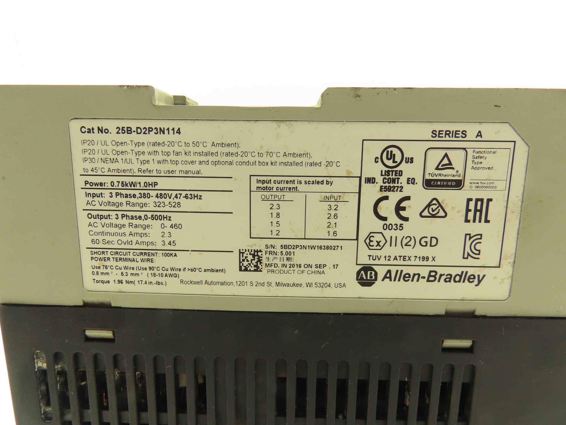 Allen Bradley 25B-D2P3N114 PowerFlex 525 VFD 500Hz 1Hp 460v 2.3A F/W 5.001 *PICS