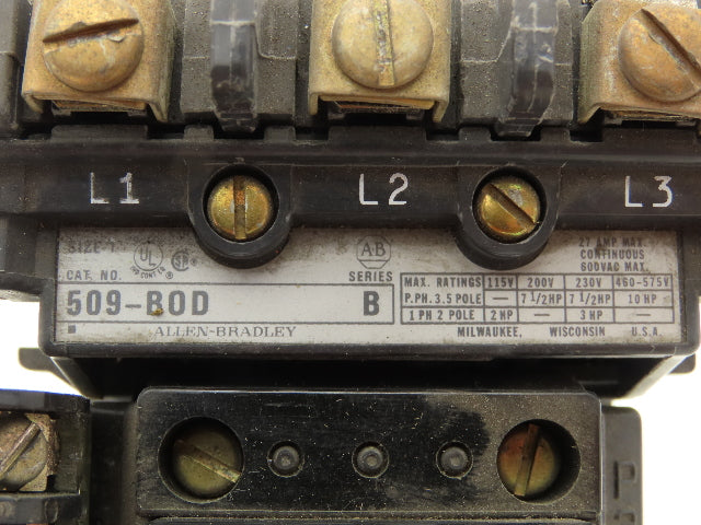 Allen Bradley 509-BOD Motor Starter 575V 3Ph 10Hp Overload Relay 120V Coil