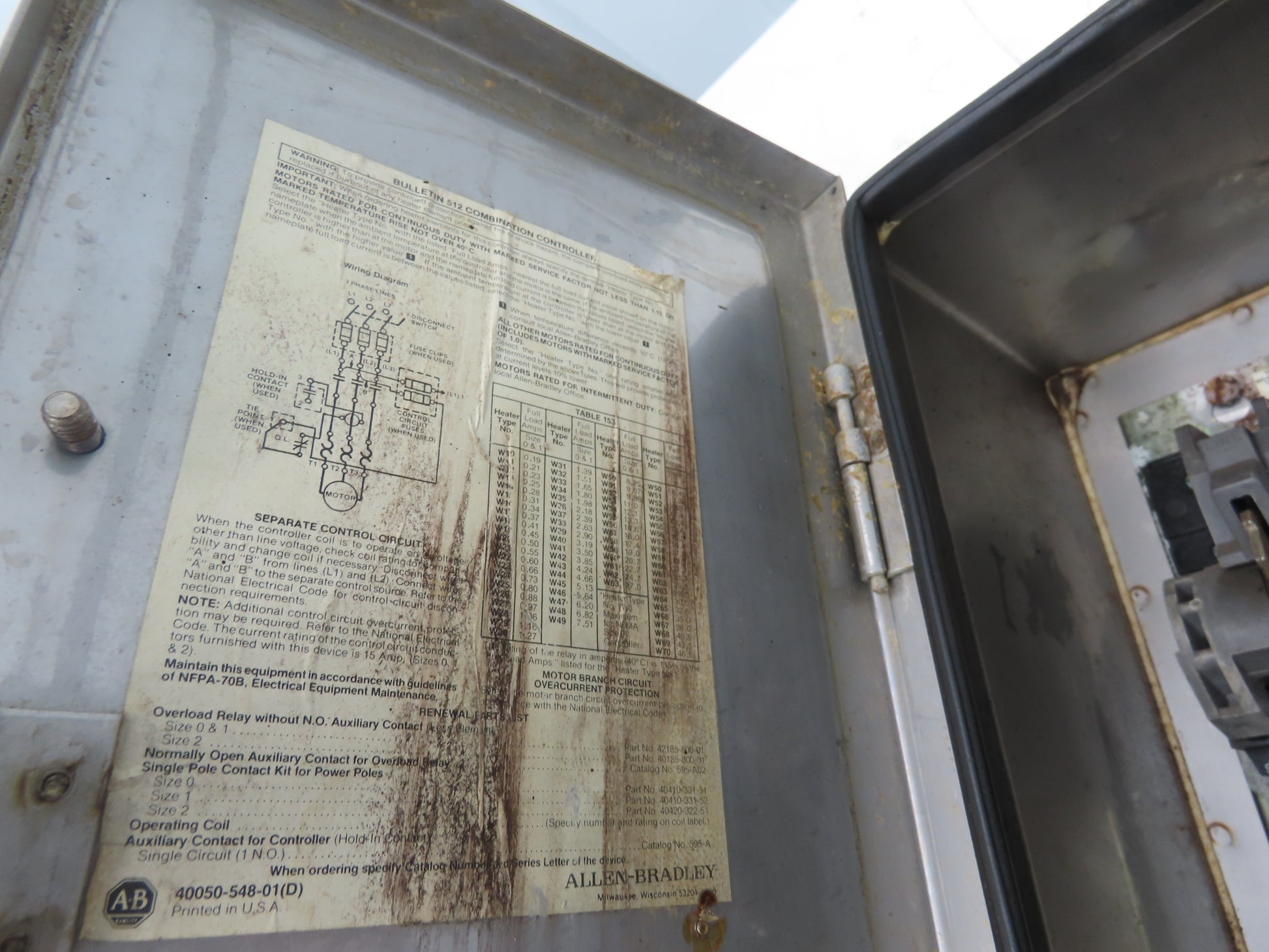 Allen Bradley 512-BCA-24 Combination Starter NEMA Size 1 Stainless 10HP 600V 3ph
