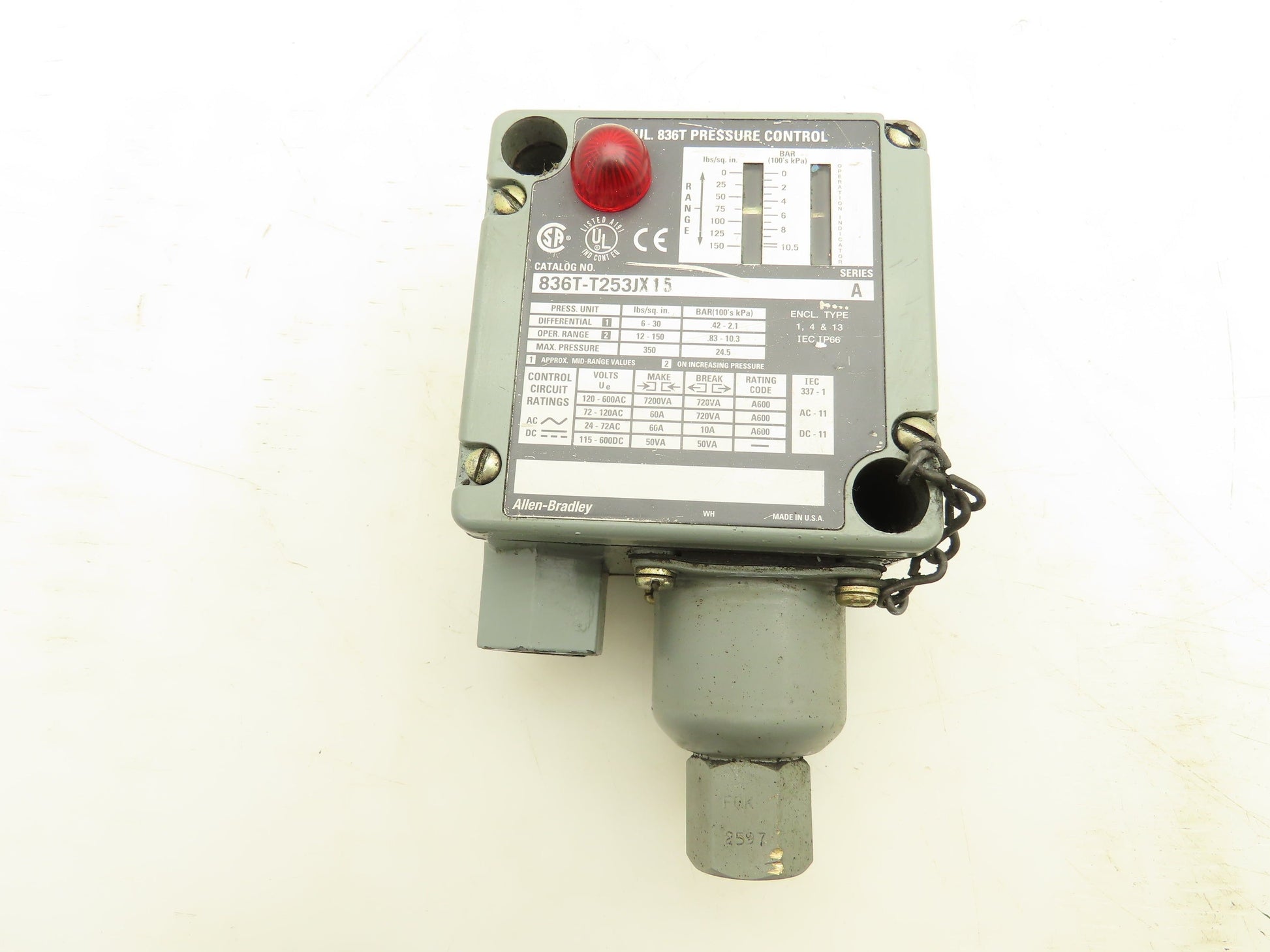 Allen Bradley 836T-T253JX15 Adjustable Pressure Control Switch Series A