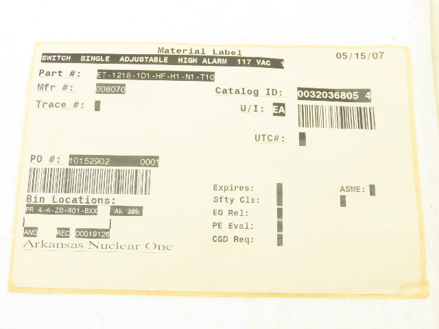 Ametek Power Instruments ET-1218 Single Adjustable High Voltage Alarm 115vac