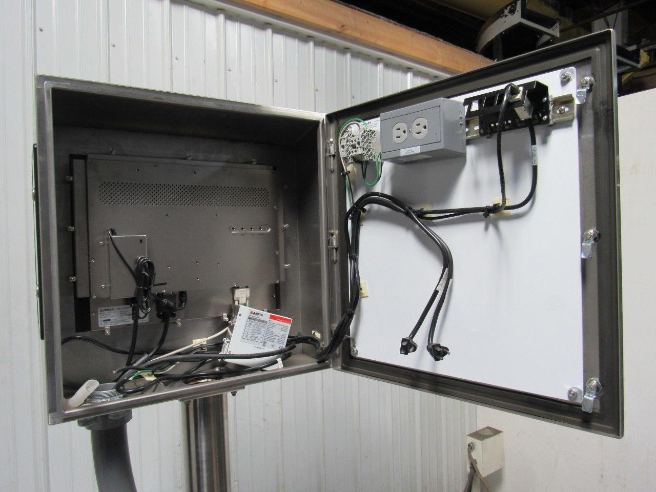 - Arista BOXPC-138D Industrial Fanless Computer In A Hoffman Enclosure W/ Related Cables. It Is Aprox. 51-1/2" From Floor To BOTTOM Of Touch Screen