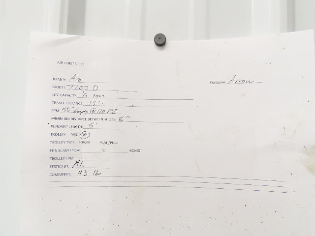 Aro 7700D 1/2 Ton 1000LB Pneumatic Air Chain Hoist 13' Lift 5' Pull Chain