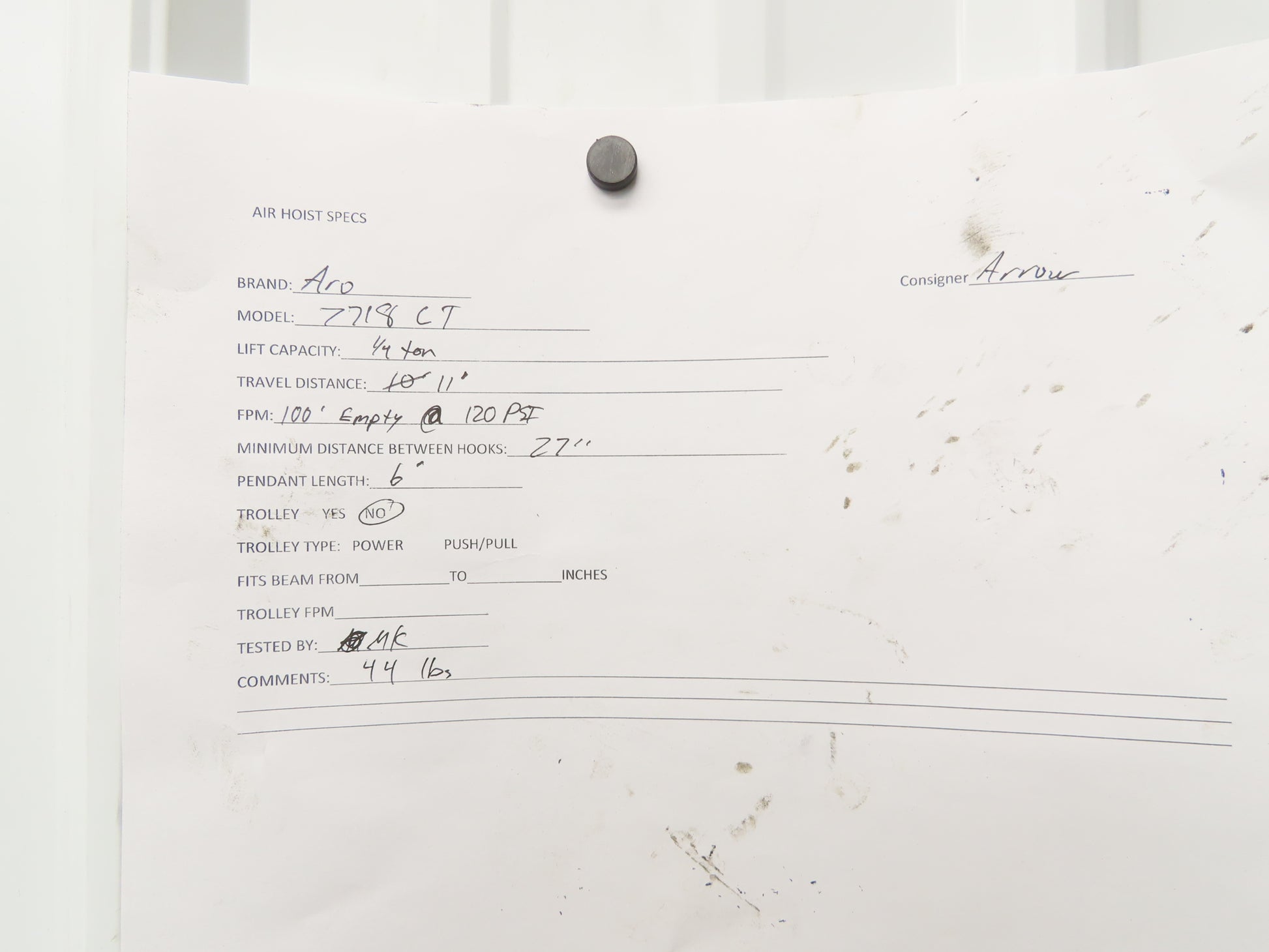 - Hoist Has Been Load Tested