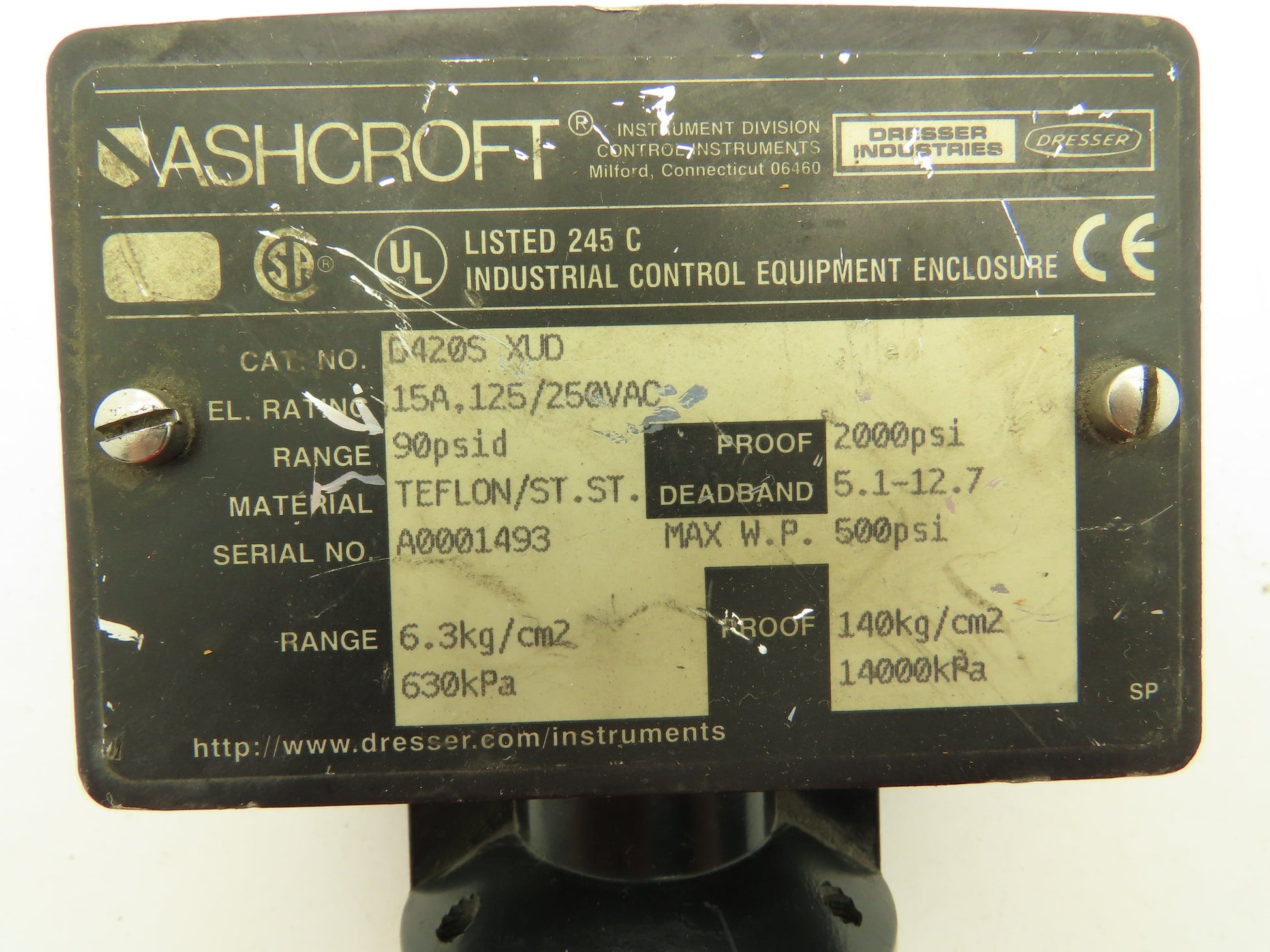 Ashcroft D420S XUD Pressure Switch 90 PSID 15A 125/250VAC