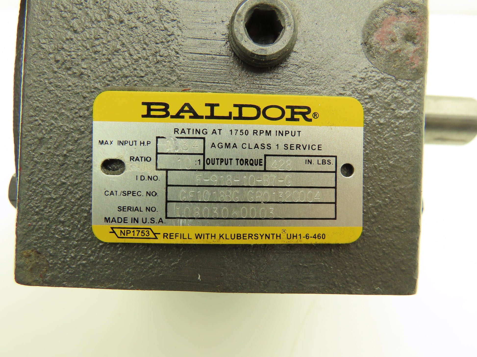 Baldor F-918-10-B7-G Worm Gearbox 10:1 Reducer 1.34Hp 175rpm 145TC LH output