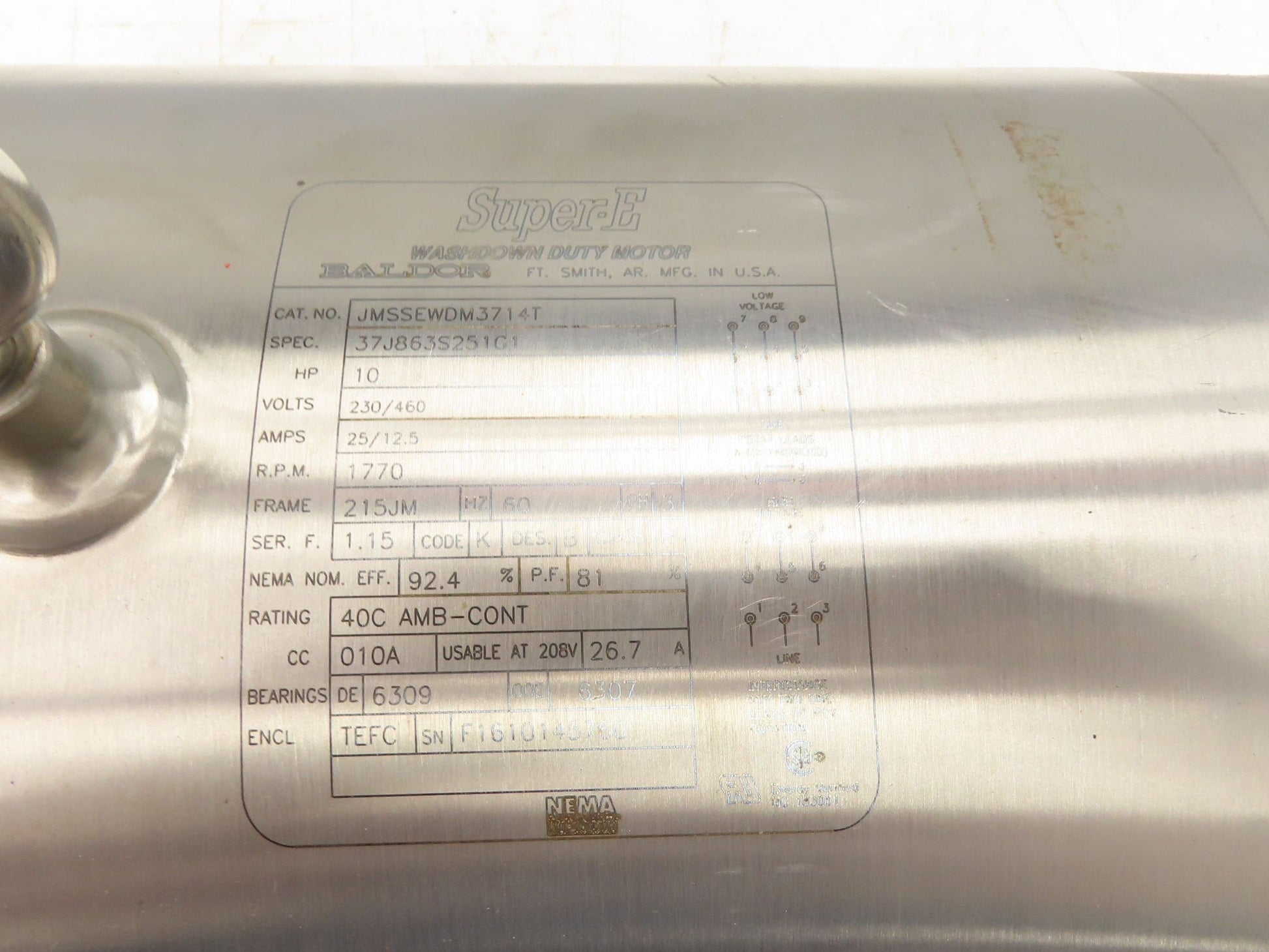Baldor JMSSEWDM3714T Stainless Pump Motor 10Hp 1800rpm 230/460V 215JM Washdown