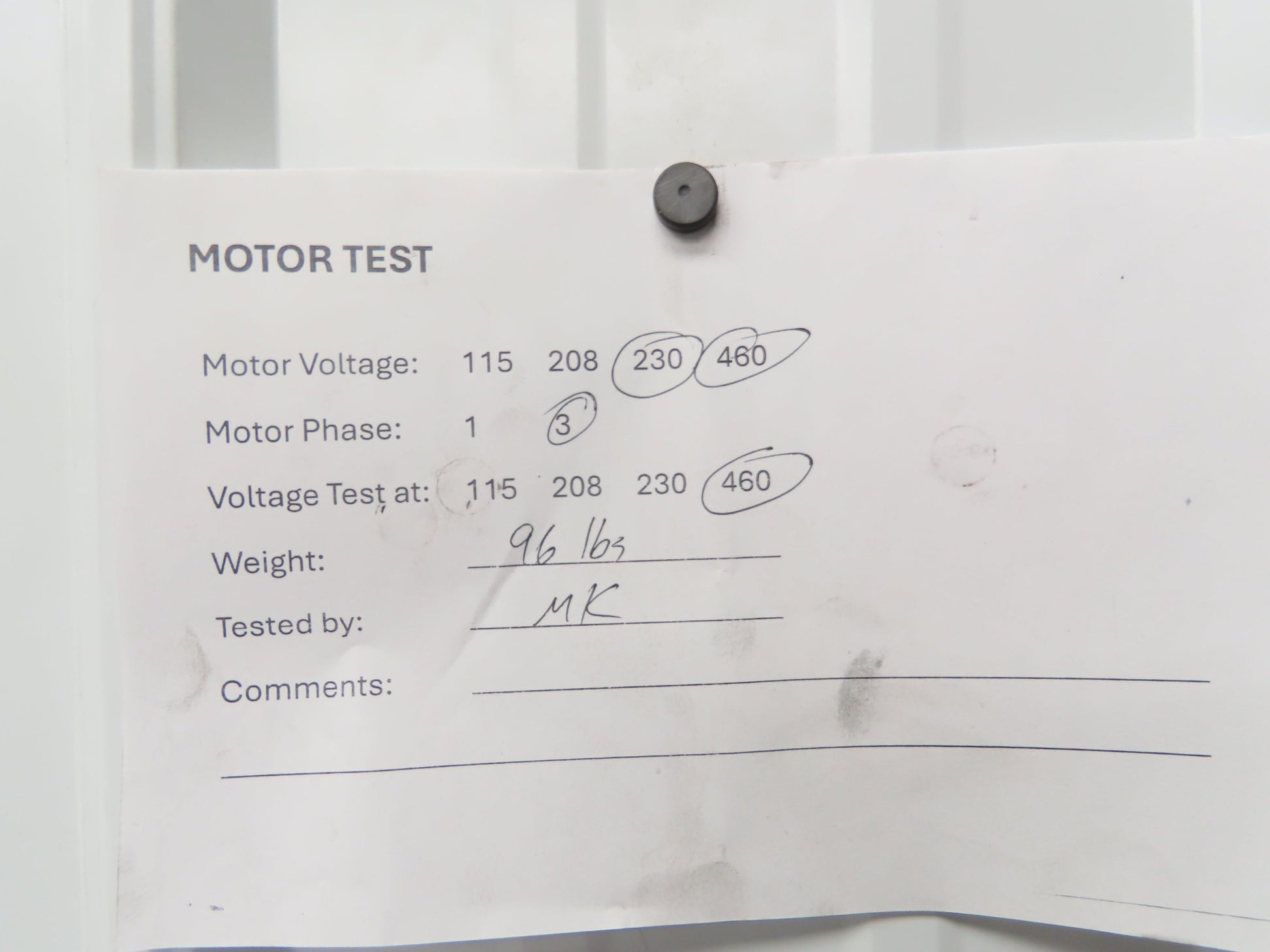 - Motor is in working condition, tested and wired for:: 460v