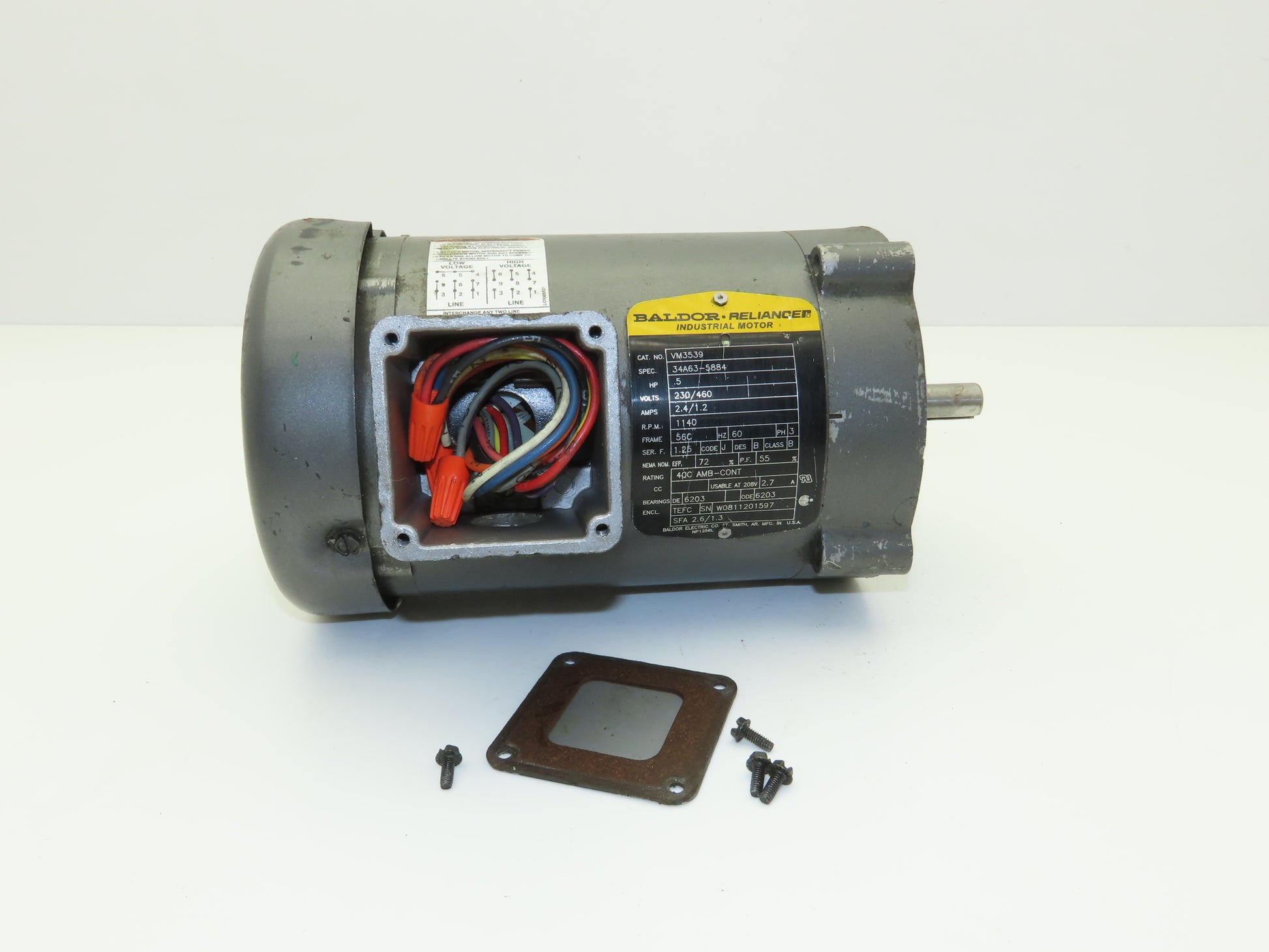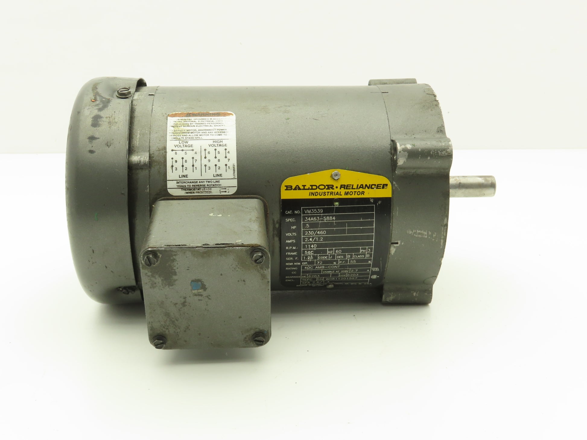 Baldor VM3539 AC Motor 1/2Hp 1140 RPM 230/460V 3PH 56C TEFC