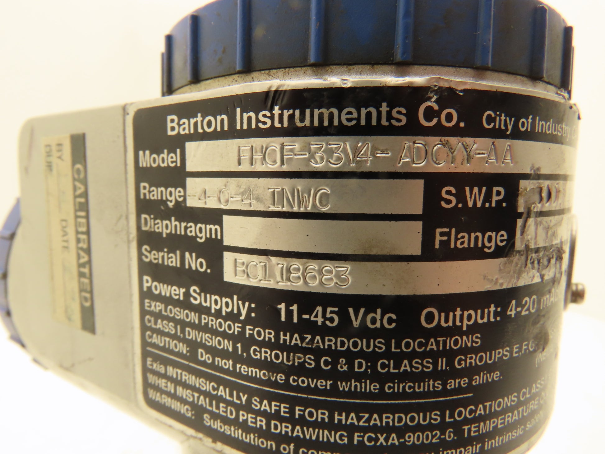 Barton Instruments FHCF-33V4-ADCYY-AA Pressure Transmitter -4-0-4 IN WC 11-45VDC