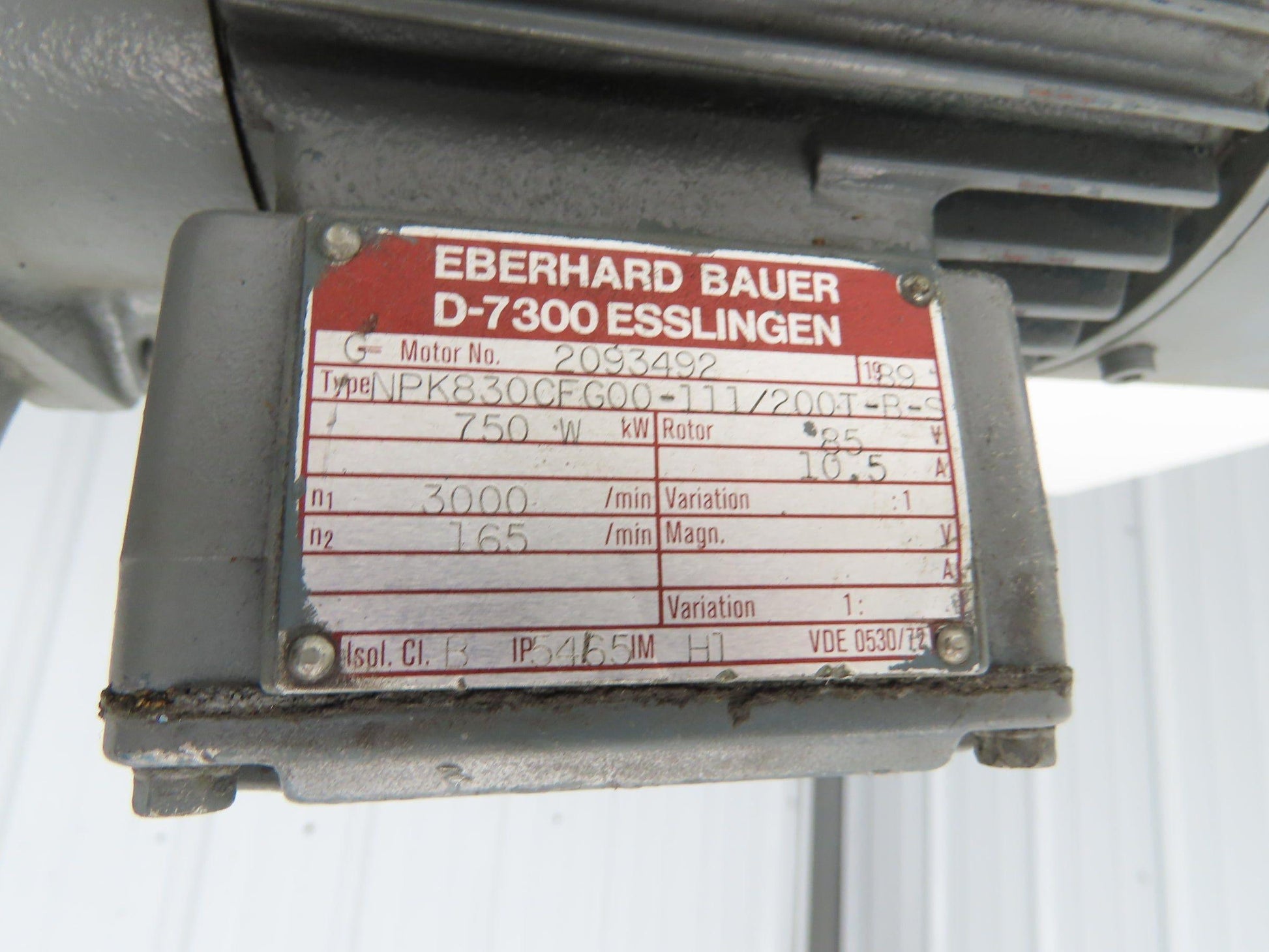 - Motor Brand and Model: Eberhard Bauer NPK830CFG00-111/200T-B-S