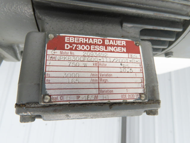 Bauer NPK830CFG00-111/200T-B-S Brake Gearmotor 165rpm 18:1 750W 85V w/Tacho
