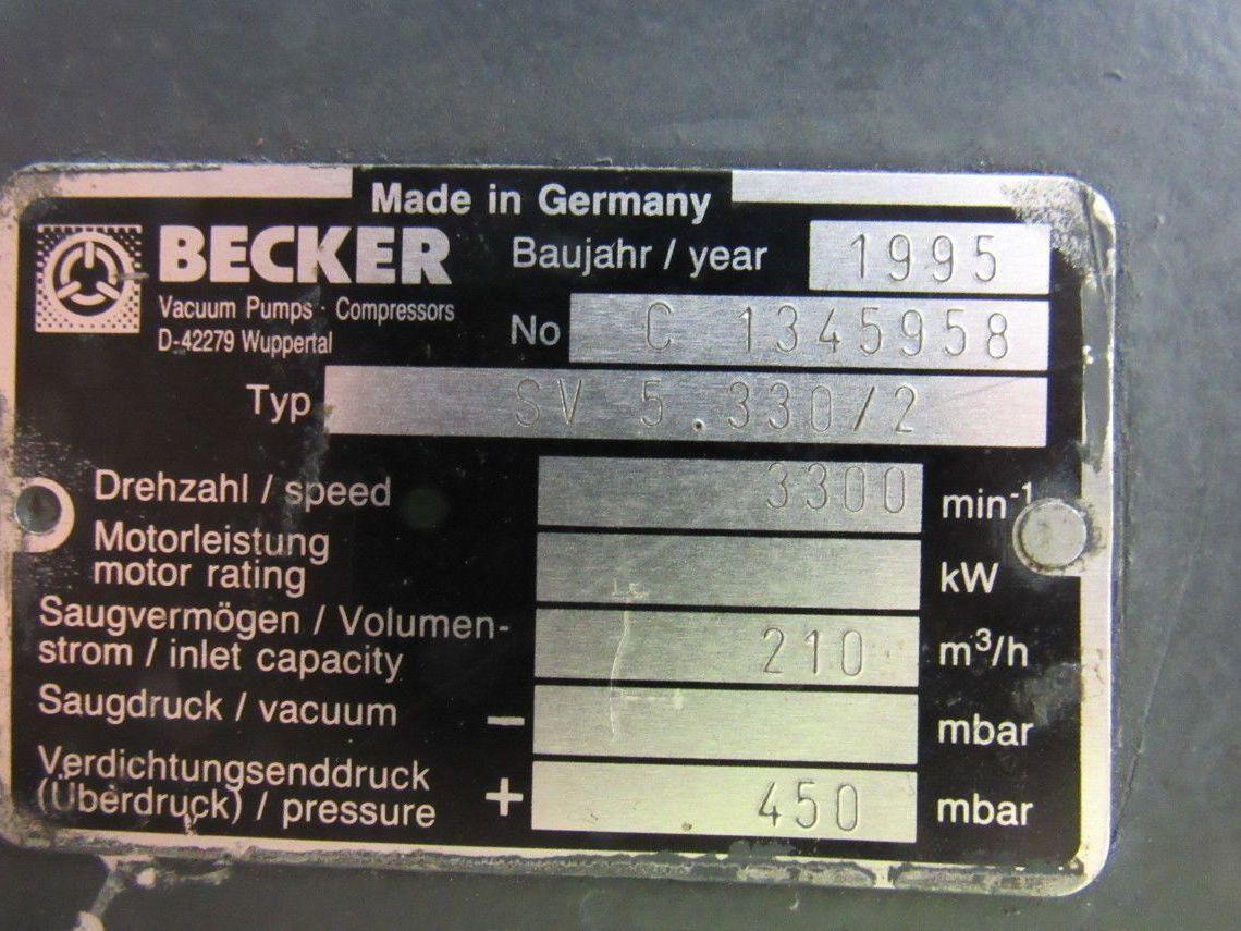 BECKER PUMP SV5.330/2 Pressure Pump 2 Stage 230/460V 450 mbar