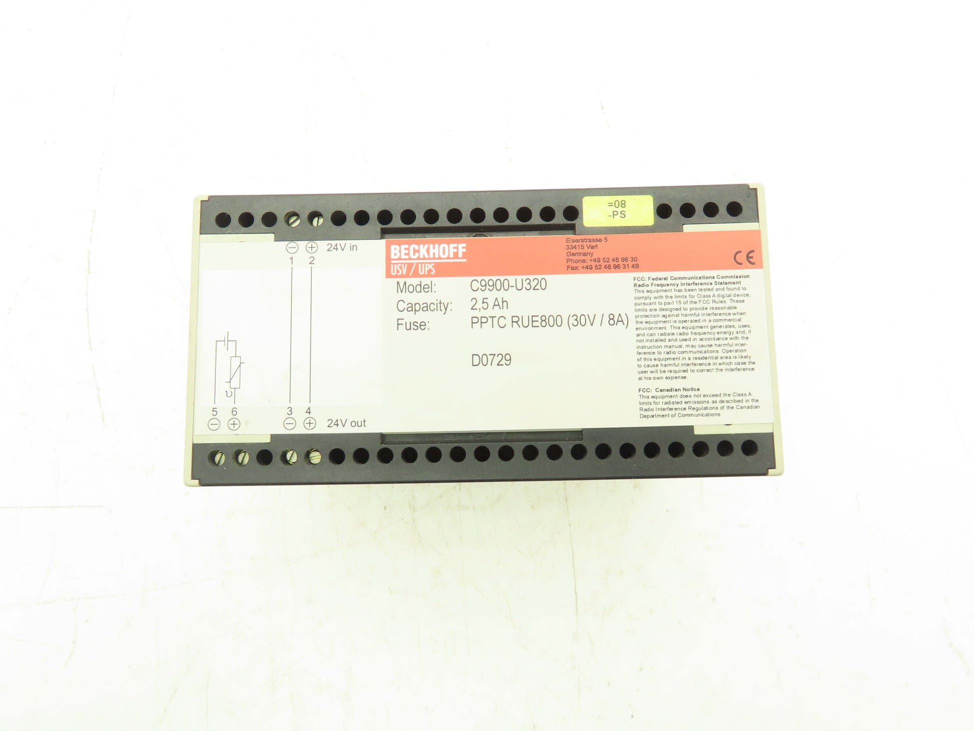 Beckhoff C9900-U320 Uninterruptible Power Supply 2.5 Ah For 24VDC Industrial PC