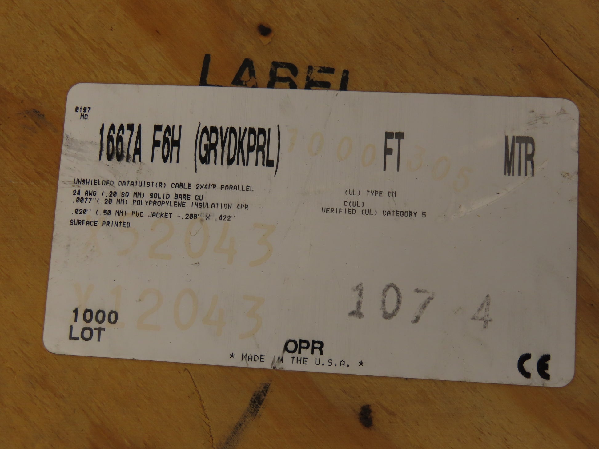 Belden 1667A F6H GRYDKPRL Cat 5 Unshielded Datatwist Cable 2x4 Pair 24awg 1000'