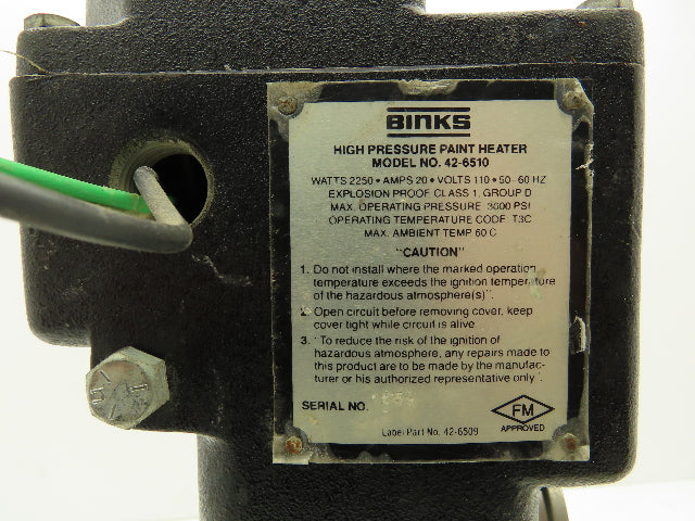 Binks 42-6510 High Pressure Paint Heater 110v 50/60hz Explosion Proof 3000psi