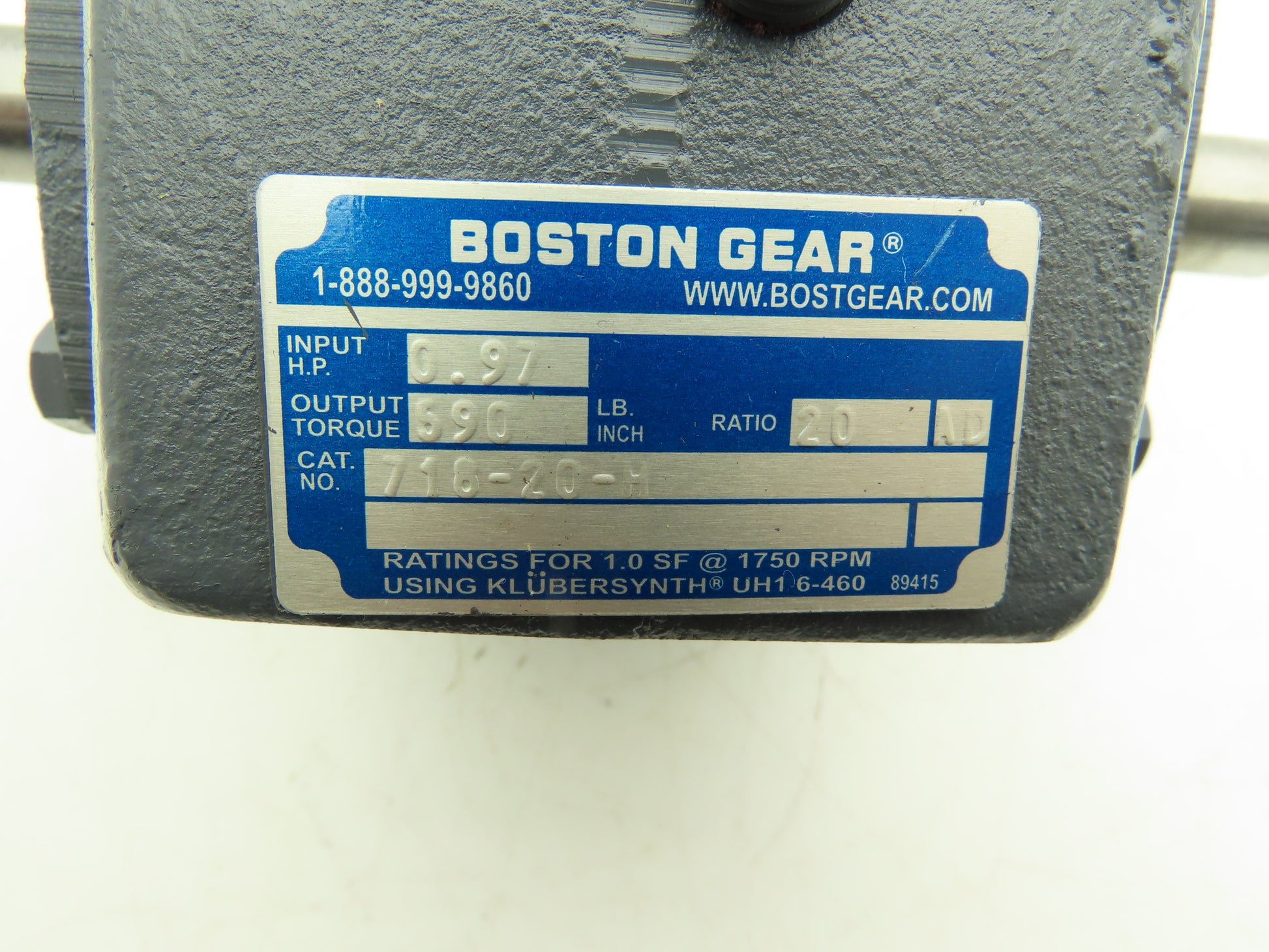 Boston Gear 718-20-H Worm Gearbox 20:1 Reducer 1Hp 88rpm Dual Shaft Output