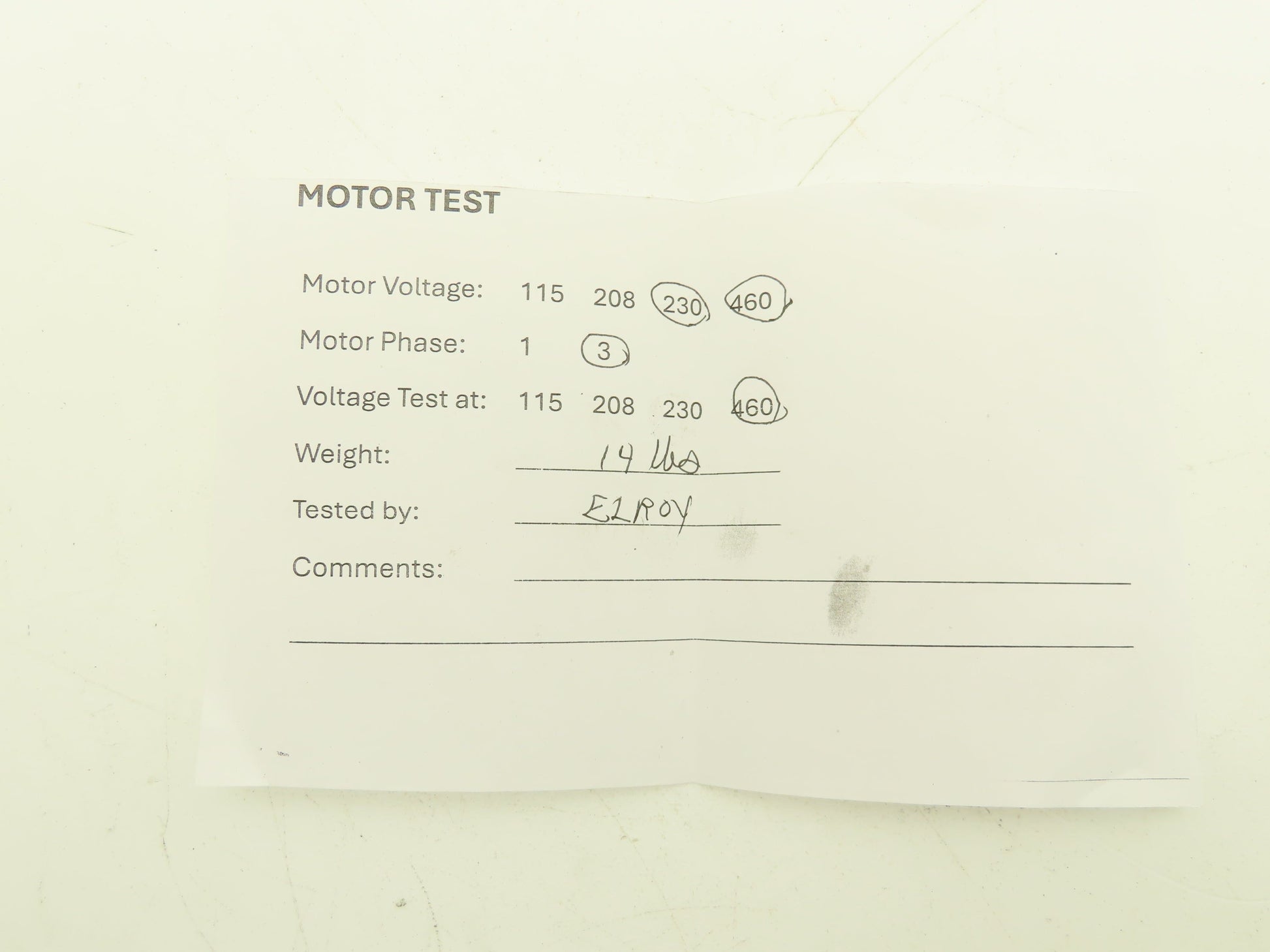 - Motor is in working condition, tested and wired for:: 460V