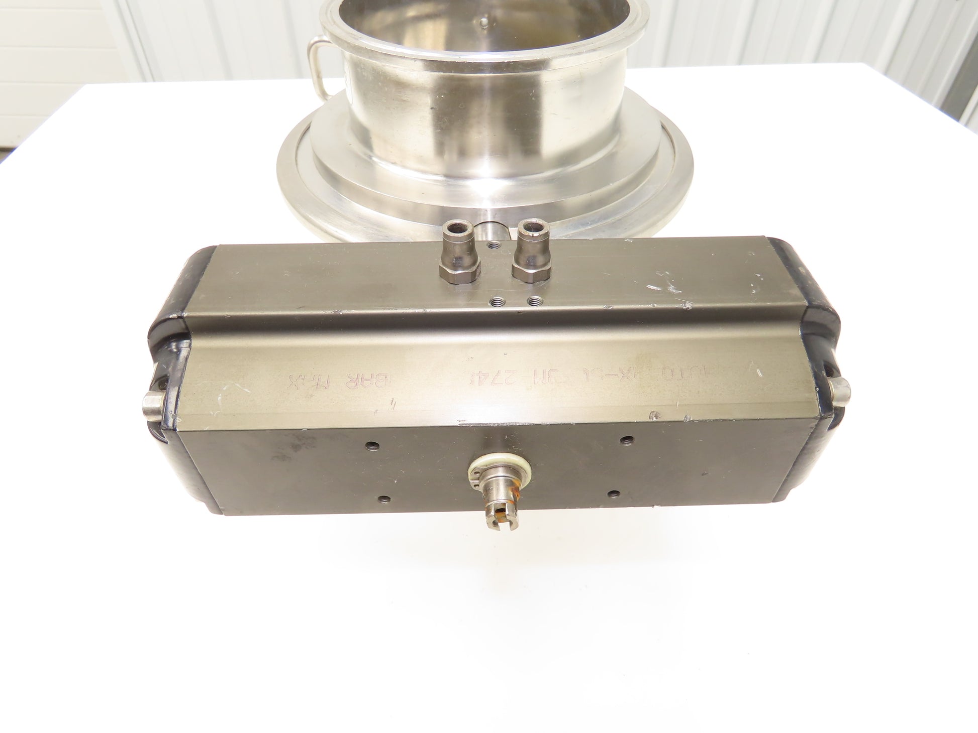 - 6" Tri-clamp tube valve with pneumatic actuator.