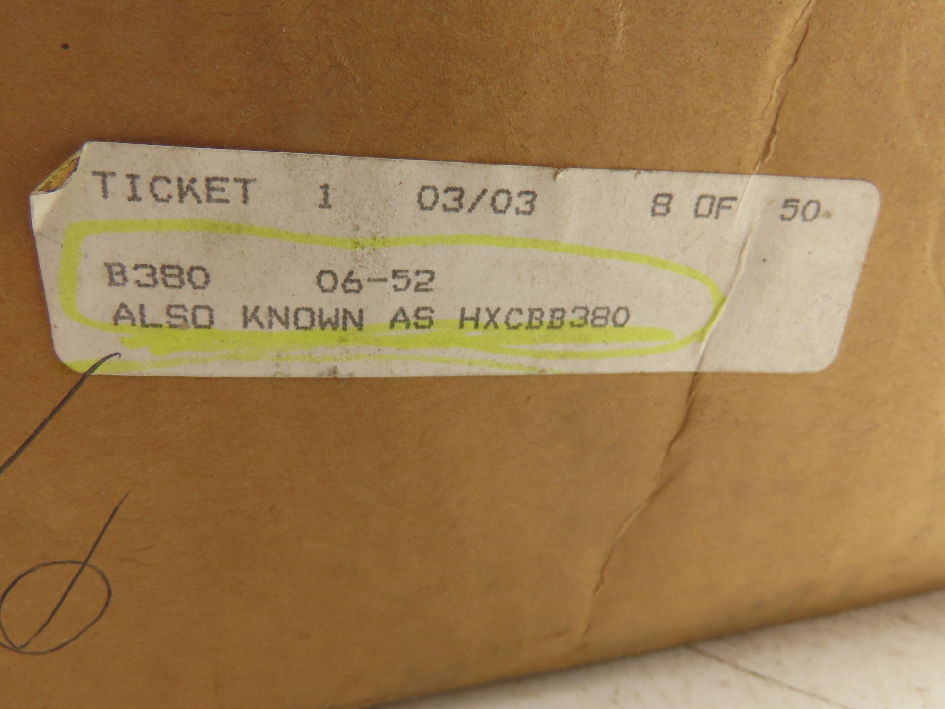 - Part # B380/HXCBB380.