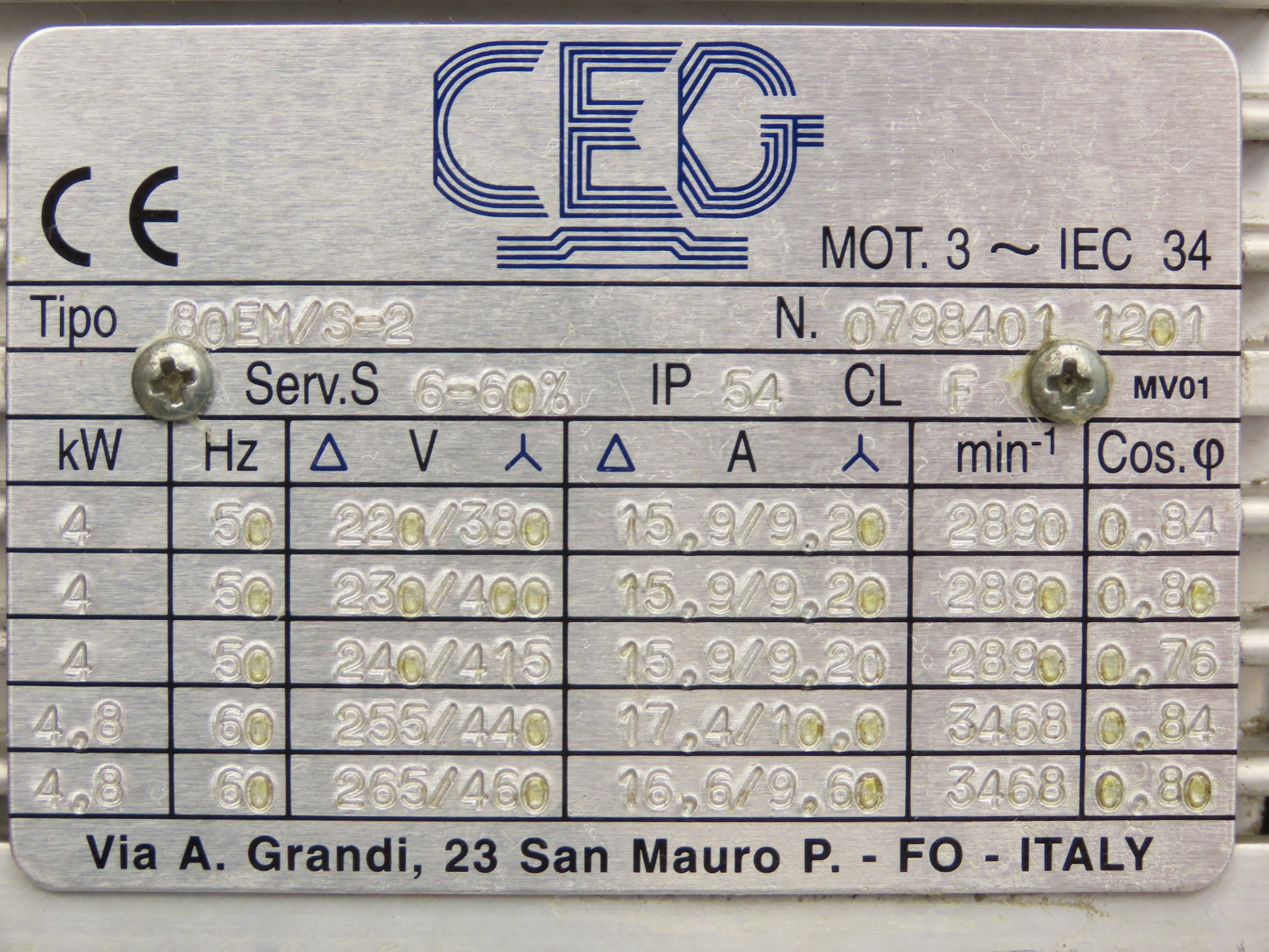 CEG 80EM/S-2 Induction Asynchronous AC Motor 4.8kW 3468rpm 230/460V 3PH 80 Frame