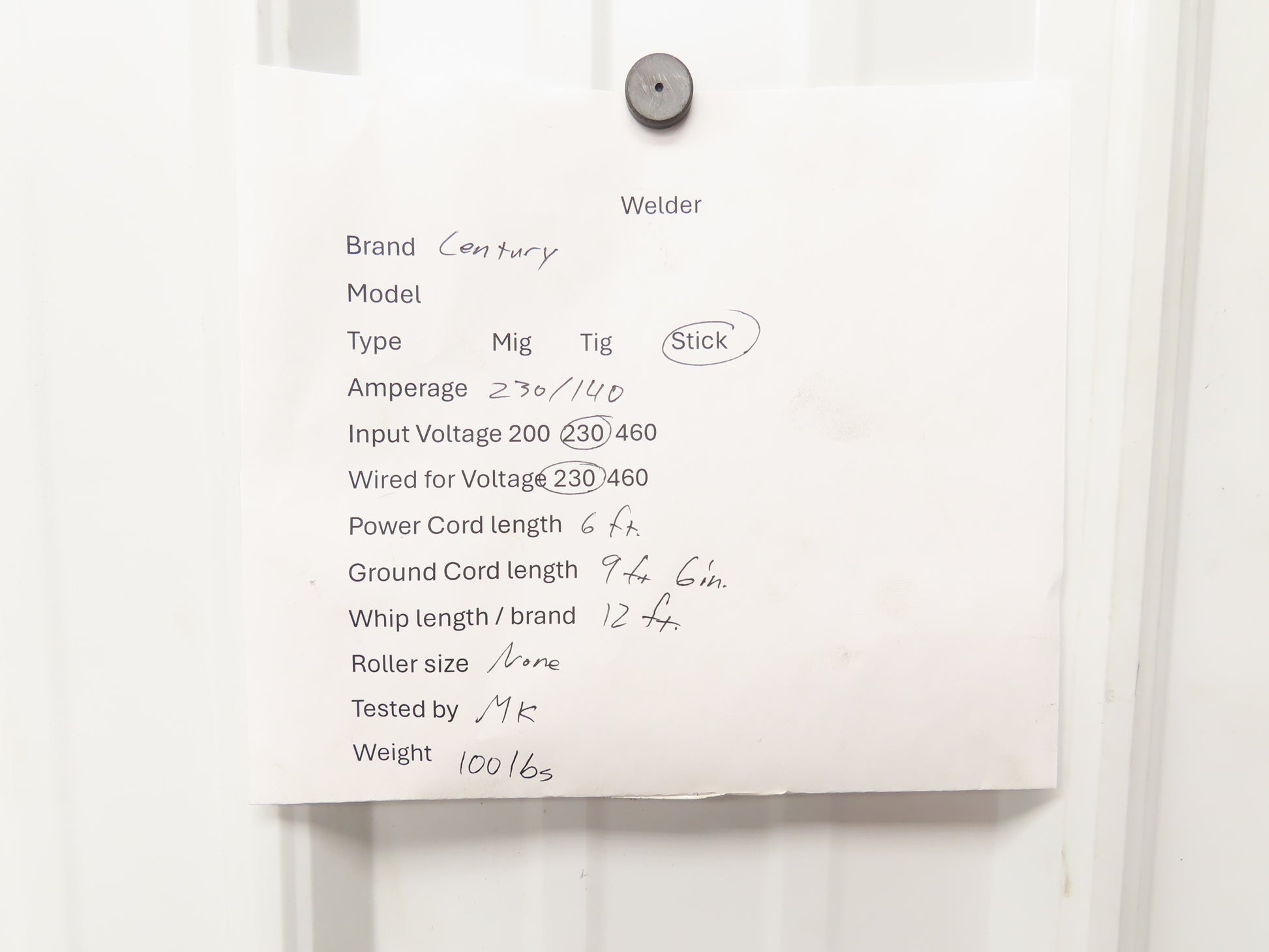 Century 110-114-115 Stick Welder 230/140 Amp AC/DC 230VAC Power Unit With Lead