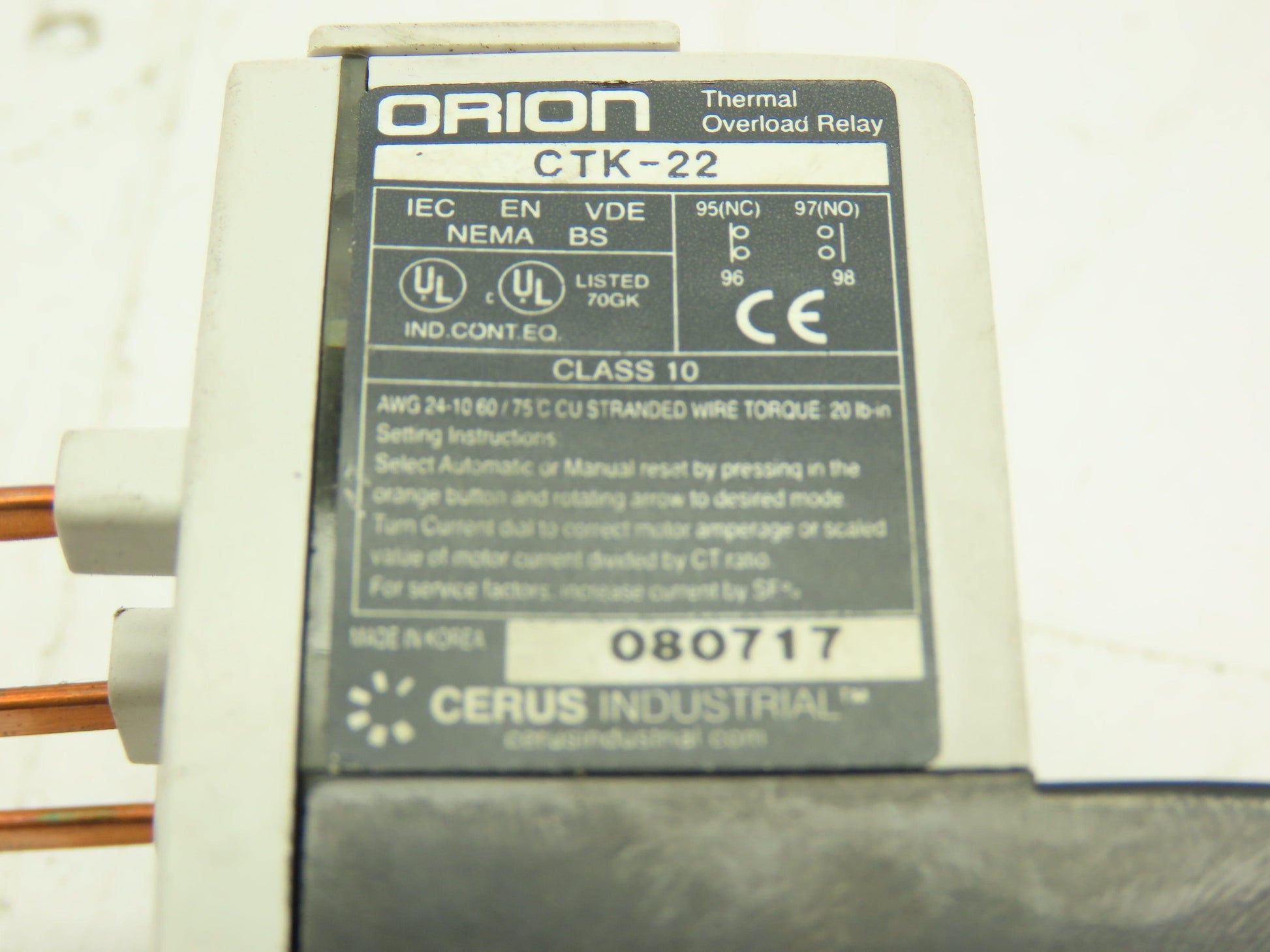 Cerus Industrial CTK-22 Orion Thermal Overload Relay 1.6-2.5A Man Reset Lot of 2