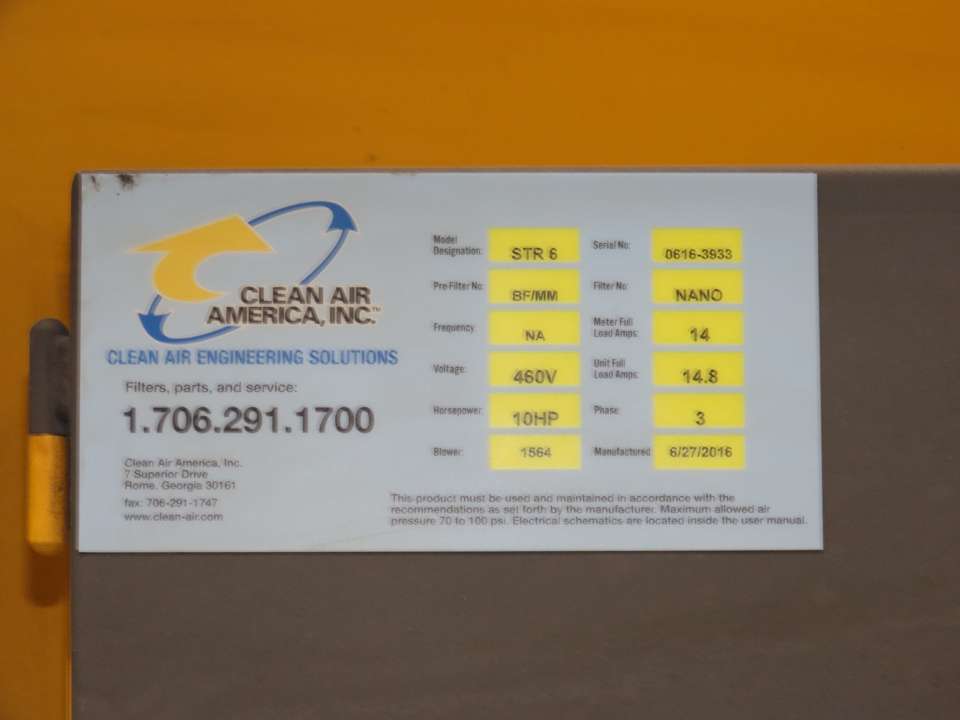 Clean Air America STR 6 Streamer Welding Dust Collector 10Hp 480V Pulser Filter