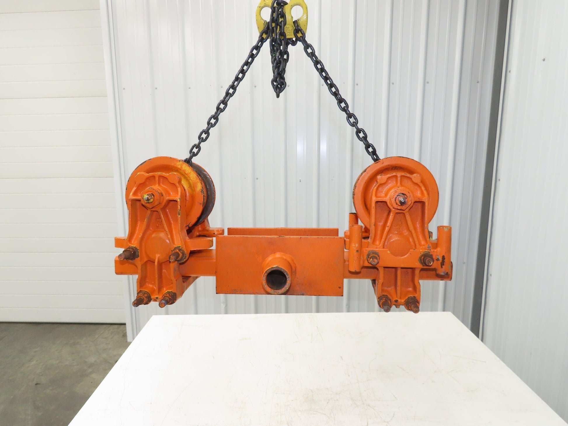 - These are off a double girder bridge crane trolley. 1-3/8" Center hole mount.