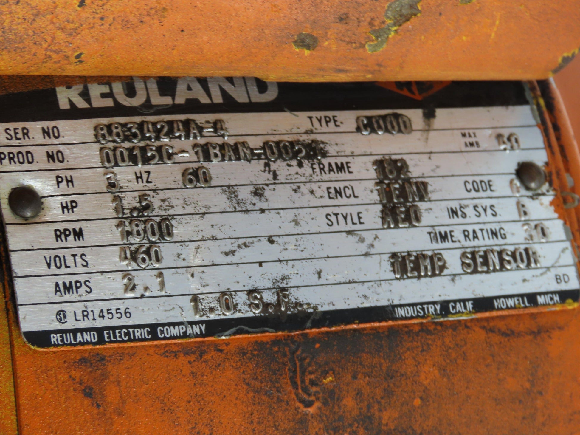 - Drive Motor: Reuland 1.5Hp 1800 RPM 460V 3PH 182 Frame.