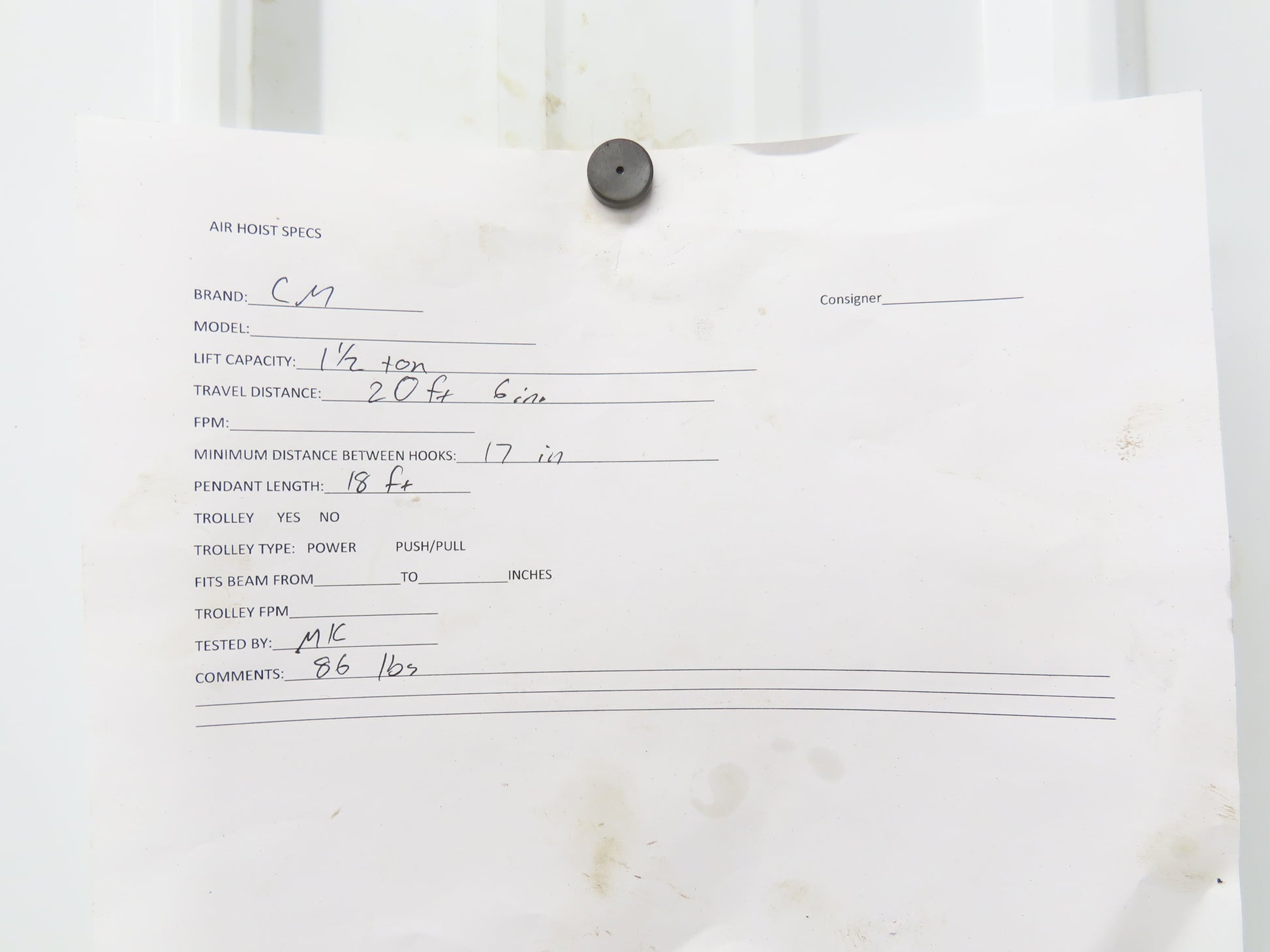 - Pendant/Control Length From Bottom of Hoist: 18' Pull chain length