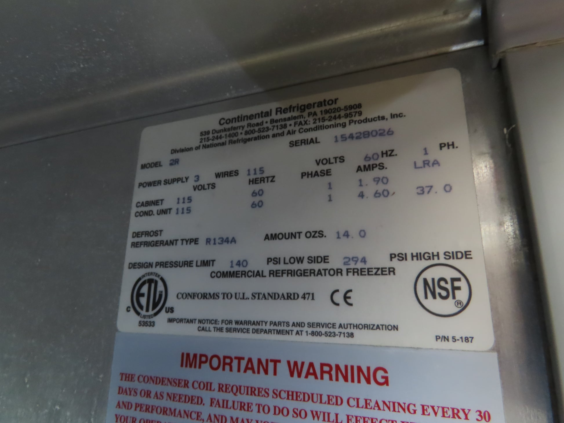 Continental 2R 2 Door Reach In Refrigerator Commercial All Stainless Steel 115V