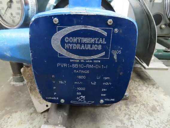 Continental PVR1 Hydraulic Power Unit 20 Gal 9gpm 1000psi 3Hp 460V w/Oil Cooler