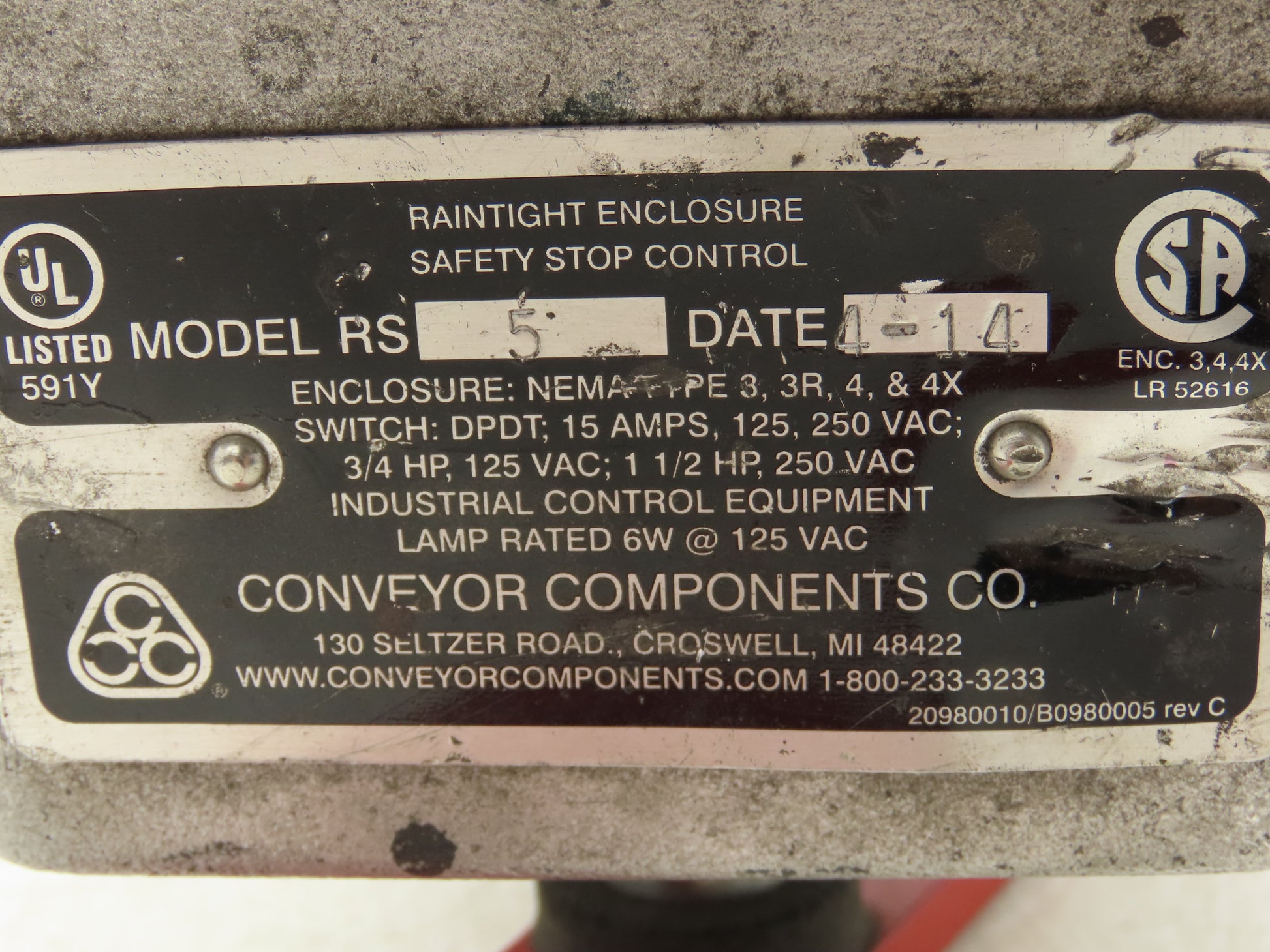 Conveyor Components RS-5 Rainproof Safety Stop Switch Limit DPDT NEMA 3R 4X